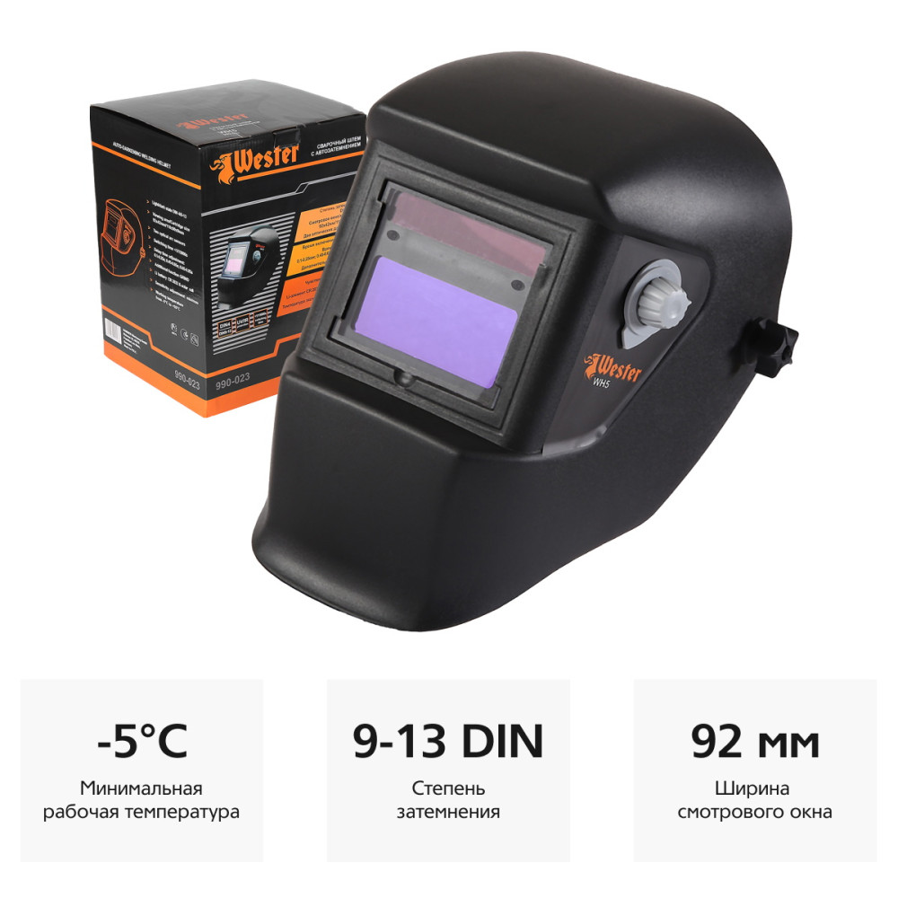 - Маска сварочная WESTER WH5 с регулировкой затемнения DIN 9-13