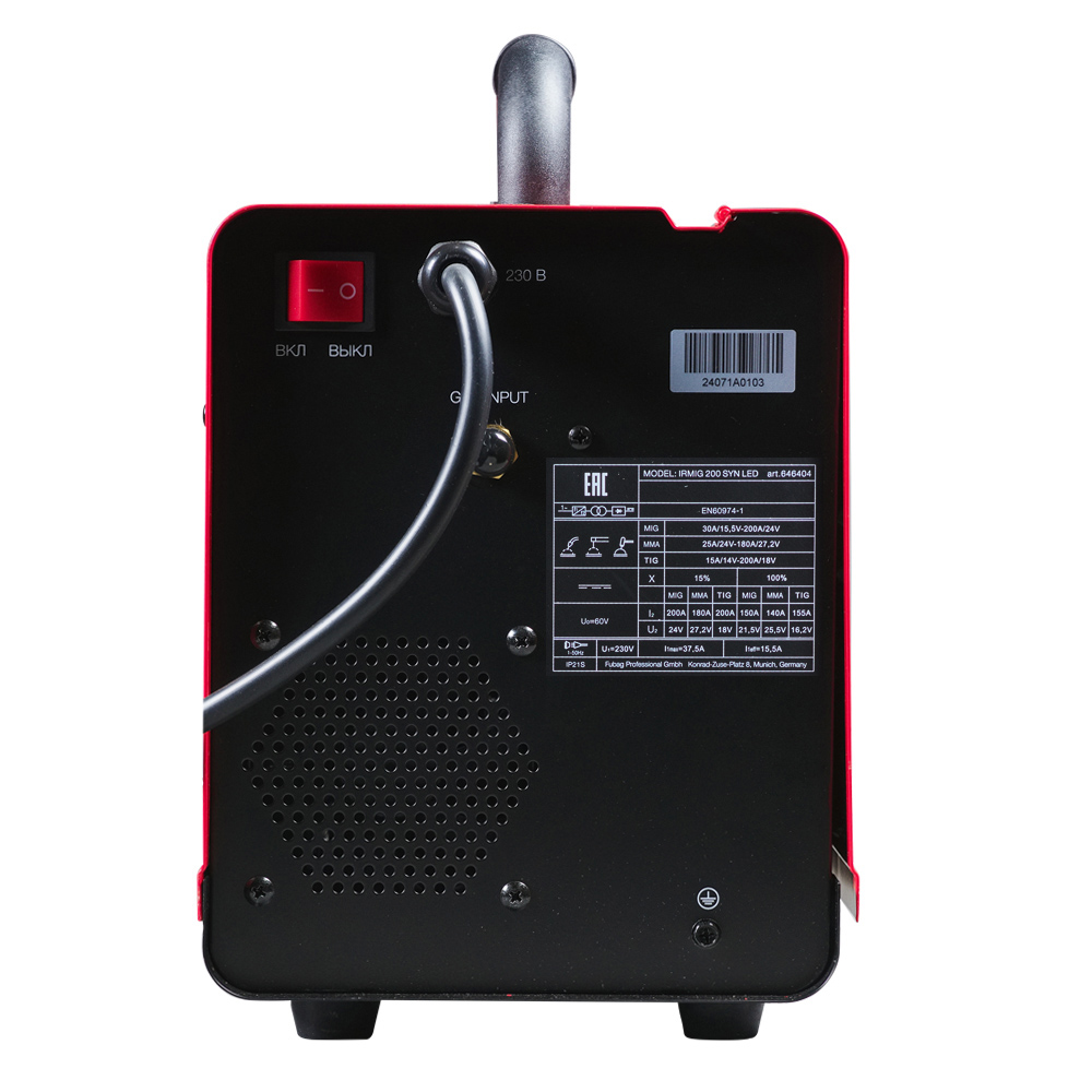 - Сварочный полуавтомат Fubag IRMIG 200 SYN LED - высокопроизводительный инверторный аппарат с ярким LED-дисплеем. Выбор методов сварки MMA, MIG/MAG, TIG Lift. Имеет 11 встроенных синергетических программ.