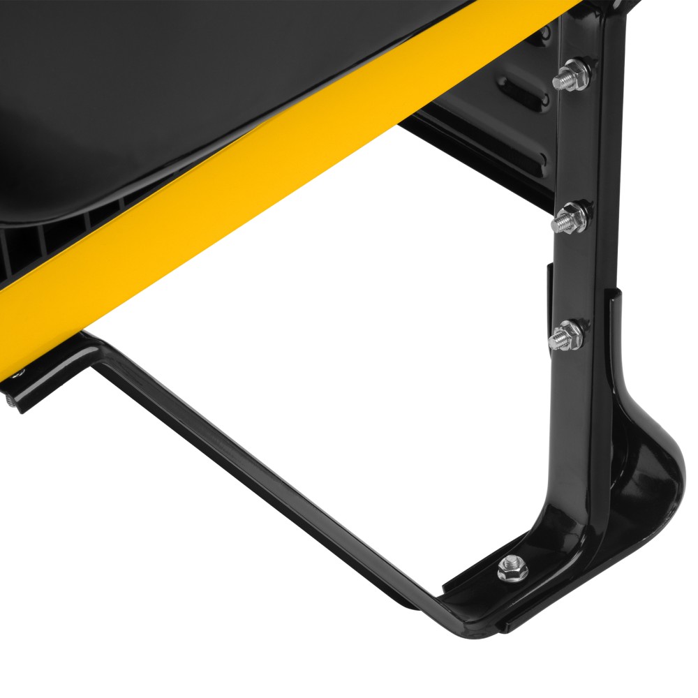 Усиленная строительная тачка Denzel 69000 с колесами 15 х 6,00-6, объемом 140 л и грузоподъемностью до 250 кг, пригодится профессиональным строителям и фермерам для ежедневного использования. Оптимально подходит для использования на строительных объектах и в сельском хозяйстве. С ее помощью можно транспортировать строительные грузы, сыпучие материалы и т.д.ПреимуществаРама с профилем 50 х 25 мм толщиной 1,2 мм характеризуется жесткостью и стабильностью, что положительно сказывается на ресурсе тачки.Прочность и надежность конструкции обеспечивает продуманная до мелочей конструкция: усиленная перемычка, широкие опоры, подпятники на ножках, мощная дуга с ребром жесткости.Благодаря завальцованным бортикам достигается высокая ударостойкость верхней части кузова.Кузов и рама надежно защищены от коррозии благодаря эмалевому покрытию.Широкие пневмоколеса с грунтозацепом и мощная рама с подпятниками предотвращают проваливание тачки в грунт.Колеса оснащены шариковыми подшипниками, что гарантирует надежность крепления и высокую проходимость тачки.Специальная петля на раме облегчает транспортировку тачки при полной загрузке и позволяет второму человеку буксировать тачку при необходимости.Для удобства фронтальной разгрузки предусмотрена дуга для упора на колесе.