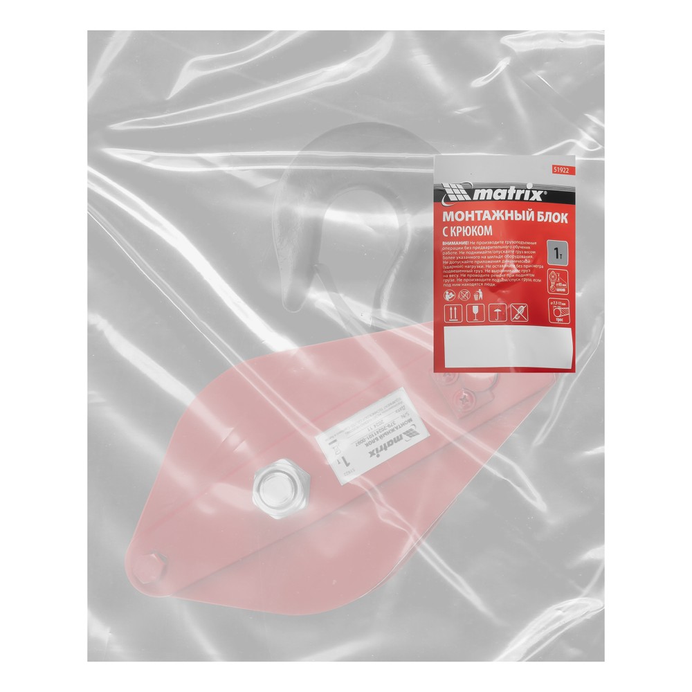 Монтажный блок Matrix 51922 с крюком, грузоподъемностью 1 т, расширяет функциональные возможности ручного и электрического грузоподъемного оборудования. Позволяет менять направление движения груза, а также увеличивает подъемную силу.ПреимуществаПродуманная конструкция — откидная щека удобна для установки троса или каната.Безопасная работа — кованая предохранительная защелка на крюке обеспечивает надежную фиксацию груза.Широкие возможности использования — блок пригодится для выполнения погрузочно-разгрузочных и монтажных работ на стройке, производстве и т.д.