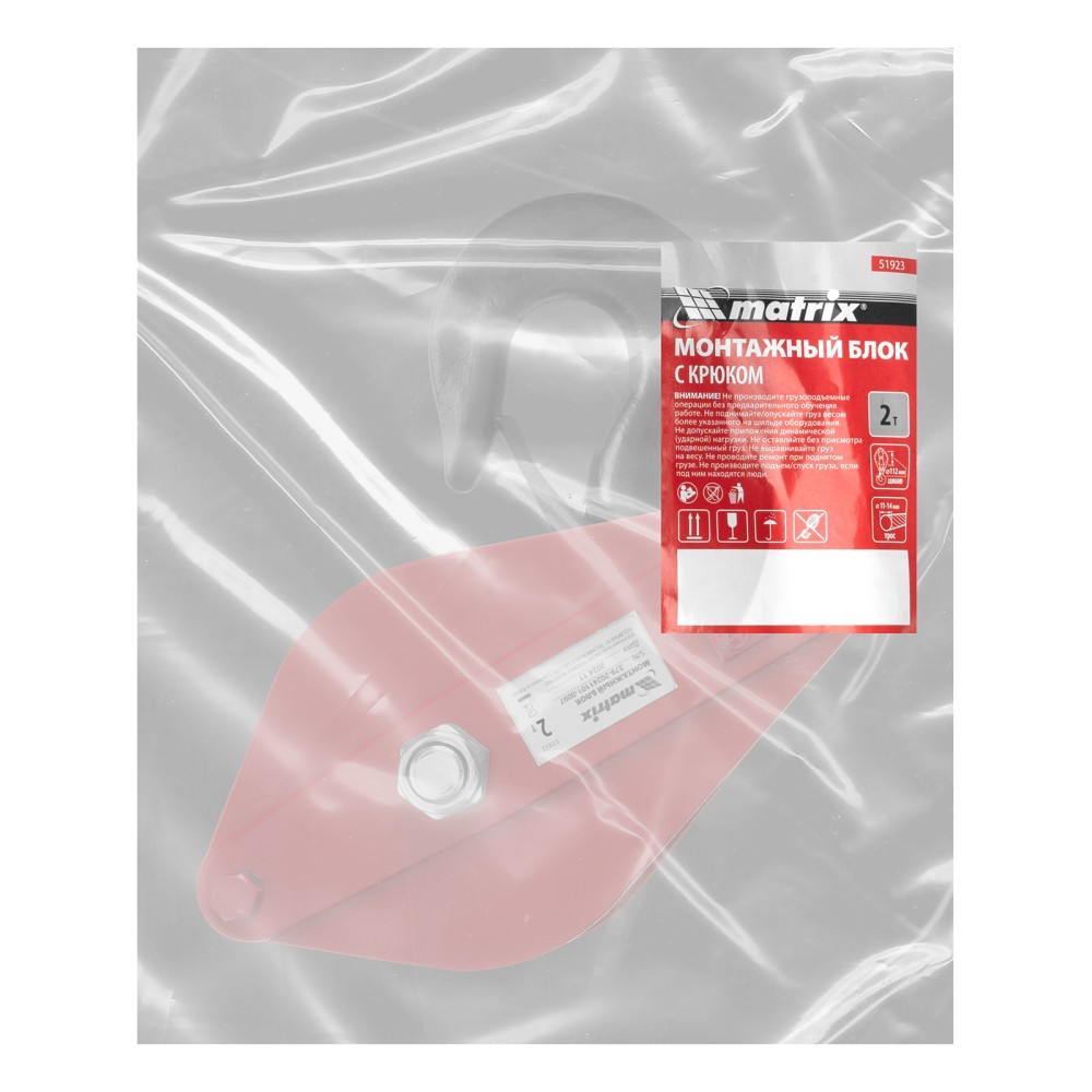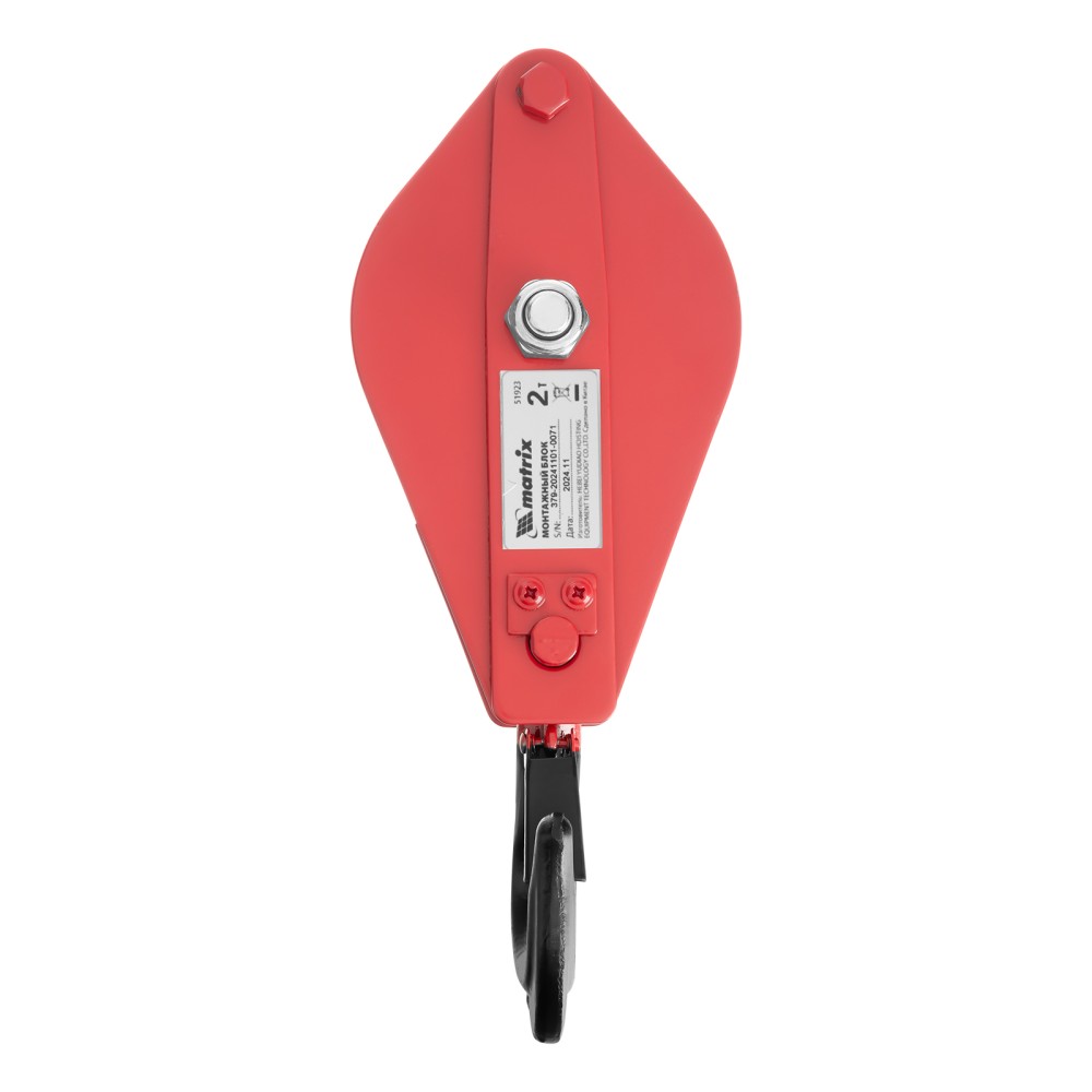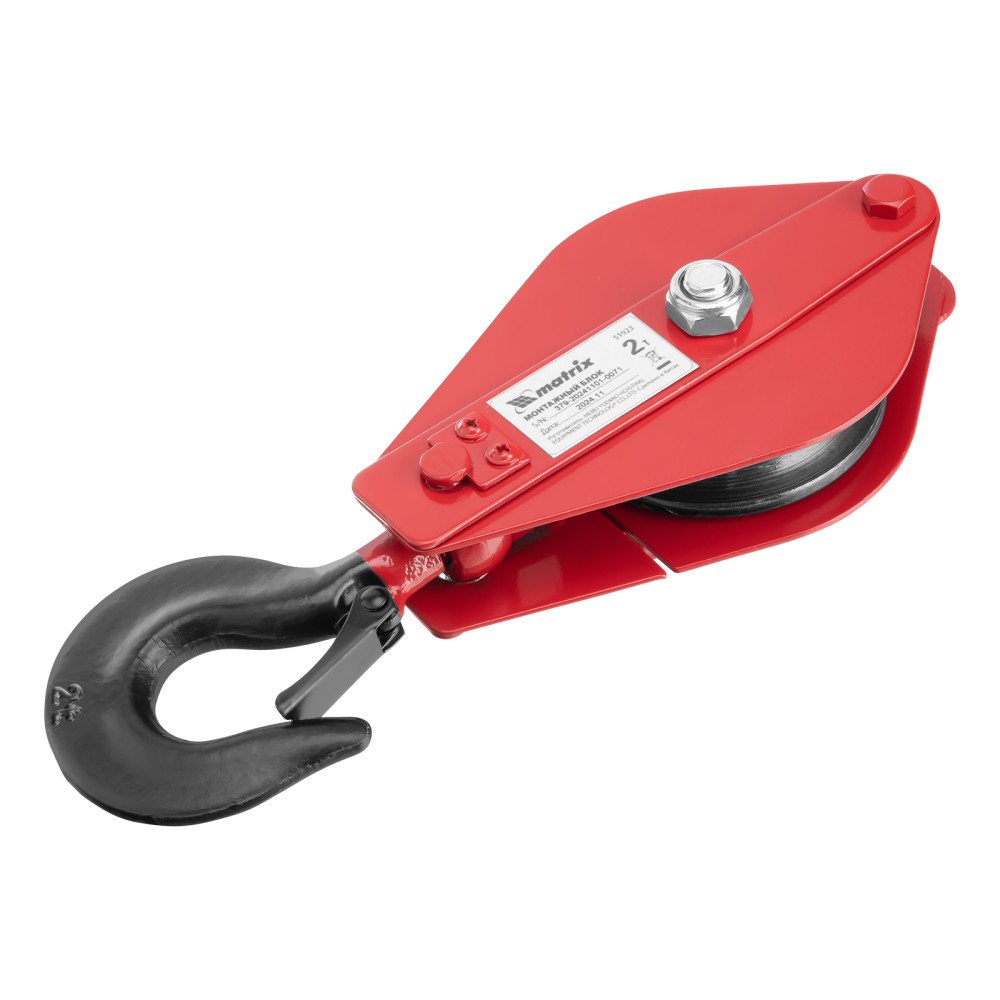 Монтажный блок Matrix 51923 с крюком, грузоподъемностью 2 т, расширяет функциональные возможности ручного и электрического грузоподъемного оборудования. Позволяет менять направление движения груза, а также увеличивает подъемную силу.ПреимуществаПродуманная конструкция — откидная щека удобна для установки троса или каната.Безопасная работа — кованая предохранительная защелка на крюке обеспечивает надежную фиксацию груза.Широкие возможности использования — блок пригодится для выполнения погрузочно-разгрузочных и монтажных работ на стройке, производстве и т.д.
