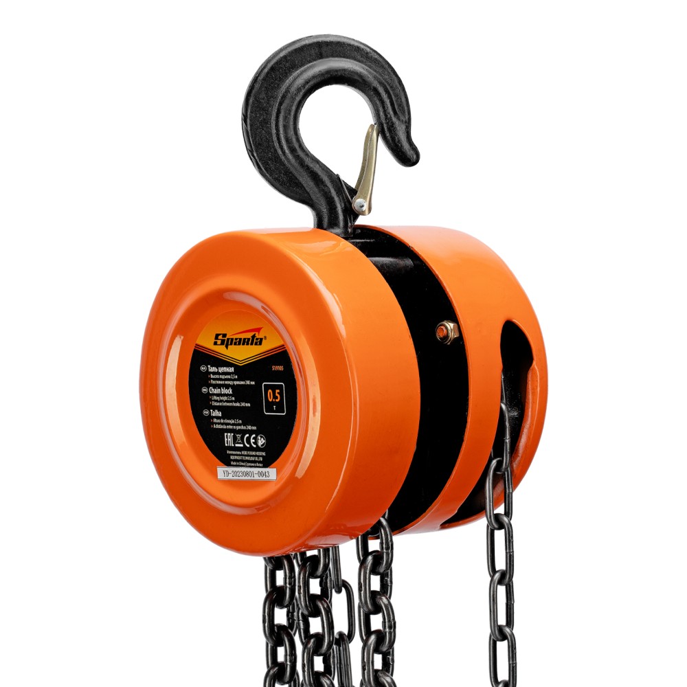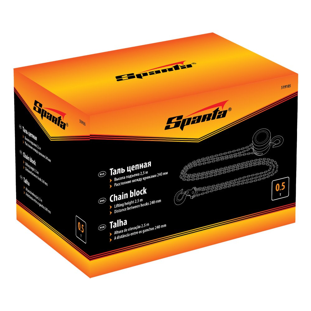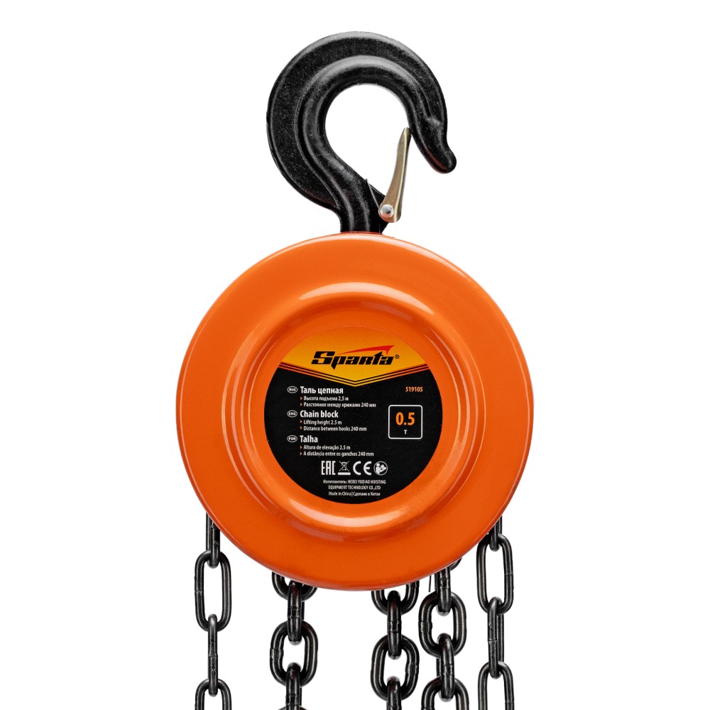 Цепная таль Sparta 519105 с расстоянием между крюками 240 мм предназначена для подъема грузов весом не более 0,5 т на высоту до 2,5 м. При этом пользователь стоит внизу, а шестеренный механизм передает усилие на цепь. С помощью тали можно поднимать тяжести на производстве, в автосервисе, на строительной площадке и т.д.ПреимуществаРабота без электросети — можно поднимать грузы на объектах без электроснабжения.Устойчивость к высоким нагрузкам — таль выполнена из прочных материалов.Безопасность — встроенный тормоз исключает самопроизвольное опускание груза, кованые предохранительные защелки надежно фиксируют его.Простая конструкция — таль состоит из крюковой подвески и блока с подъемной и замкнутой управляющей цепями.Удобное хранение и транспортировка — размеры изделия в упаковке составляют 250 х 170 мм, вес — 8 кг.