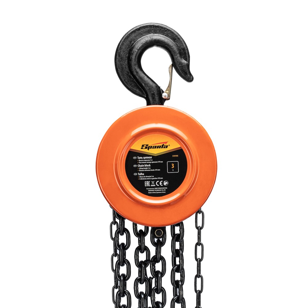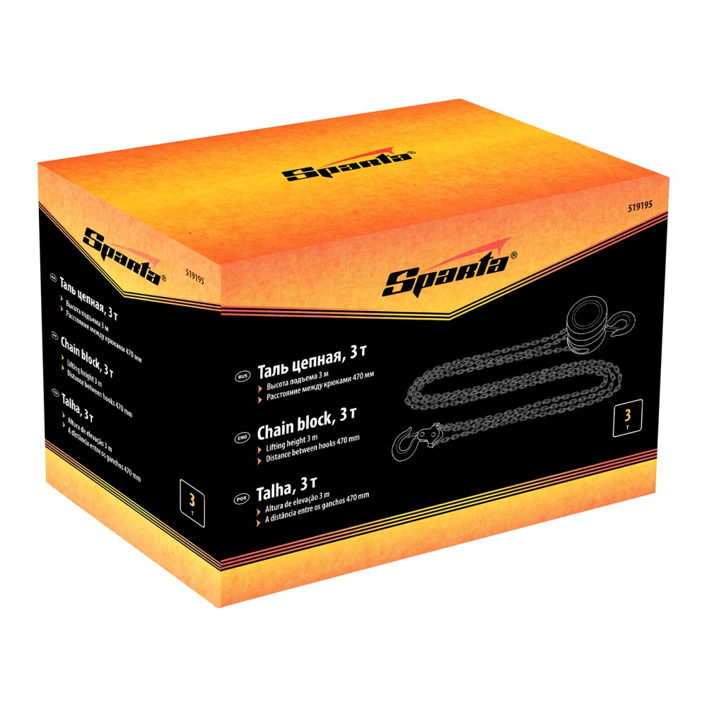 Цепная таль Sparta 519195 с расстоянием между крюками 470 мм предназначена для подъема грузов весом не более 3 т на высоту до 3 м. При этом пользователь стоит внизу, а шестеренный механизм передает усилие на цепь. С помощью тали можно поднимать тяжести на производстве, в автосервисе, на строительной площадке и т.д.ПреимуществаРабота без электросети — можно поднимать грузы на объектах без электроснабжения.Устойчивость к высоким нагрузкам — таль выполнена из прочных материалов.Безопасность — встроенный тормоз исключает самопроизвольное опускание груза, кованые предохранительные защелки надежно фиксируют его.Простая конструкция — таль состоит из крюковой подвески и блока с подъемной и замкнутой управляющей цепями.