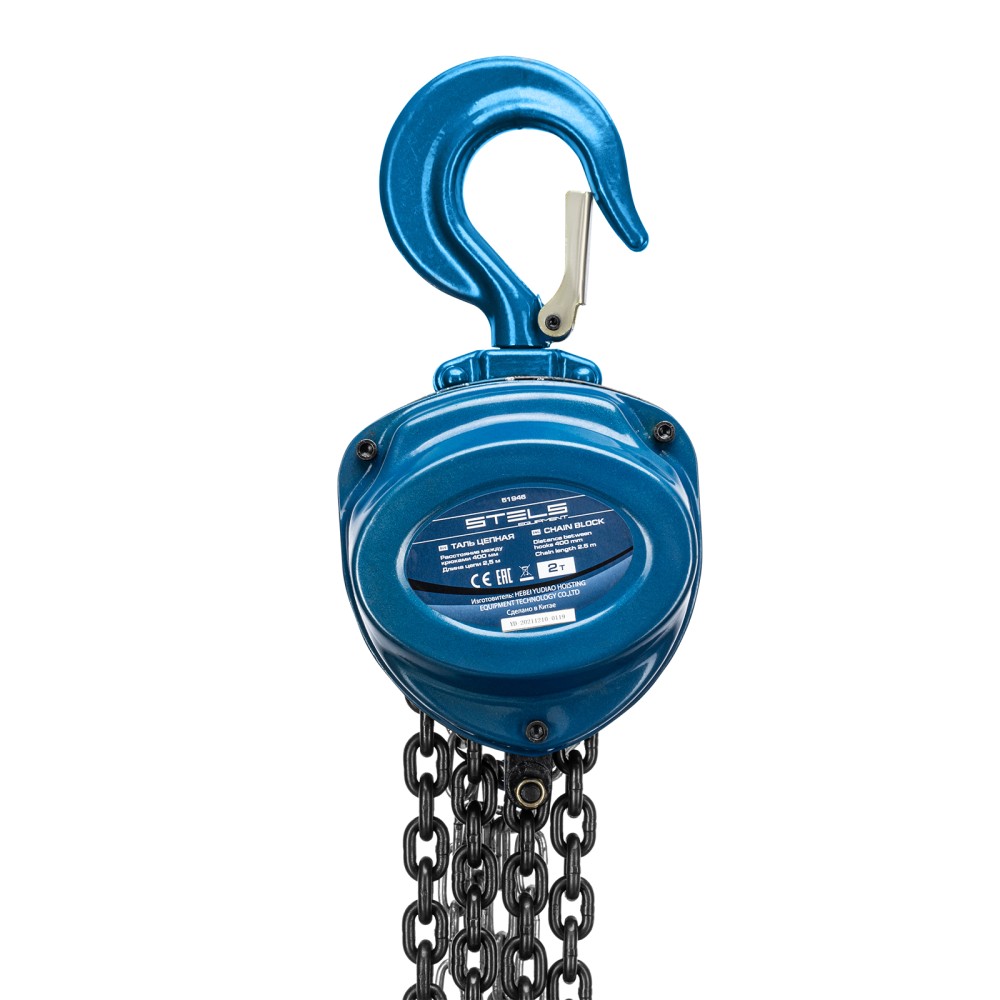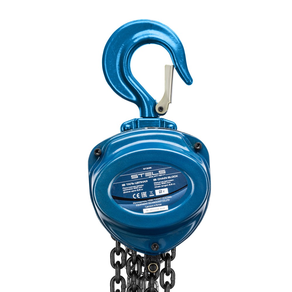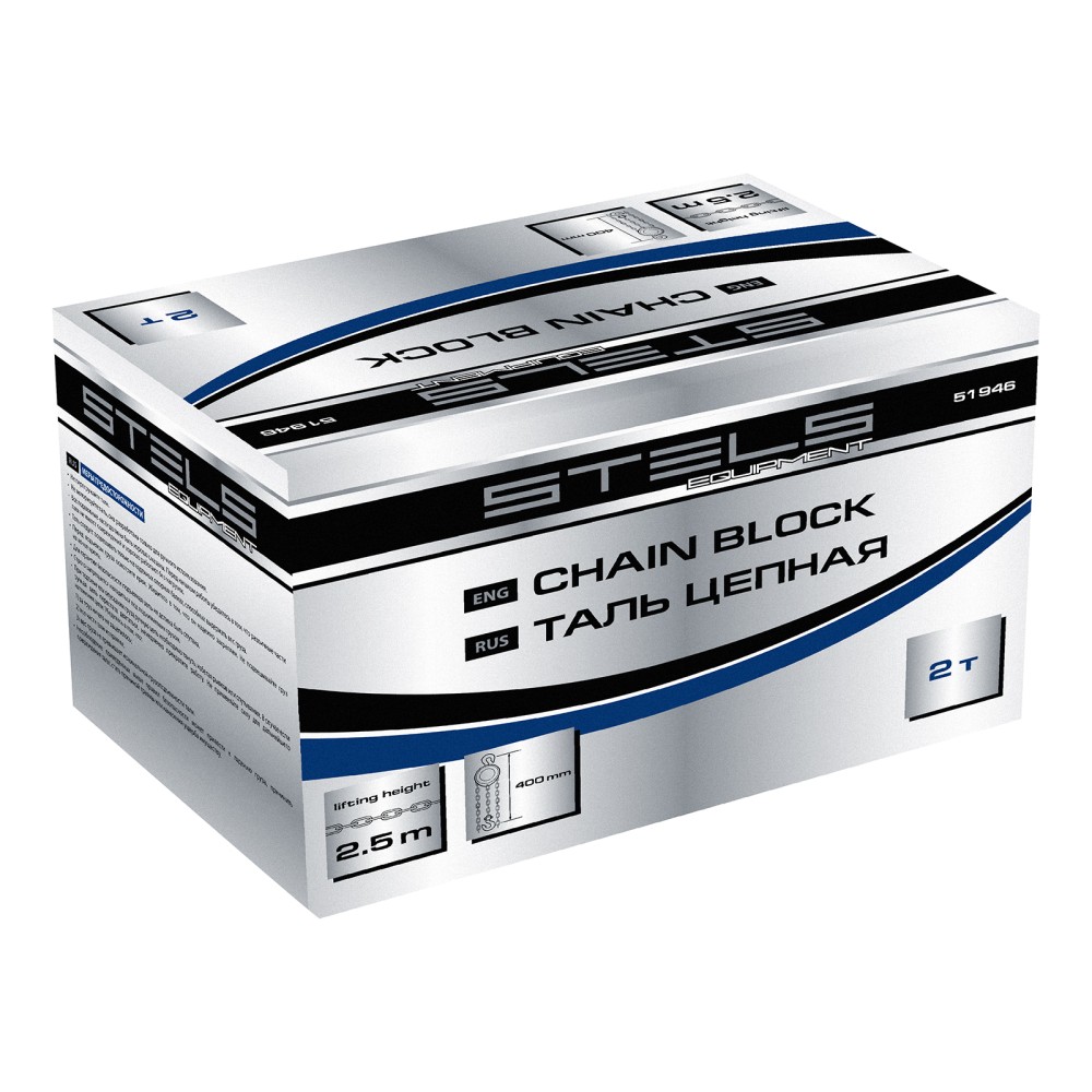 Цепная таль Stels 51946 с расстоянием между крюками 400 мм способна поднимать грузы весом не более 2 т на высоту до 2,5 м. Устройство с оптимальным передаточным числом не требует больших усилий от пользователя. Таль пригодится для проведения погрузочно-разгрузочных работ на производстве, стройке, складе, в цехе, автосервисе и т.д.ПреимуществаАвтономность — изделие не требует подключения к источнику электропитания.Прочность — таль выполнена из высококачественной углеродистой стали, грузовая цепь — из закаленной инструментальной стали.Безопасность — тормозной механизм препятствует самопроизвольному опусканию груза.Простая конструкция — устройство состоит из крюковой подвески и блока с подъемной и замкнутой управляющей цепями.Надежная фиксация груза — крюки оснащены коваными предохранительными защелками.