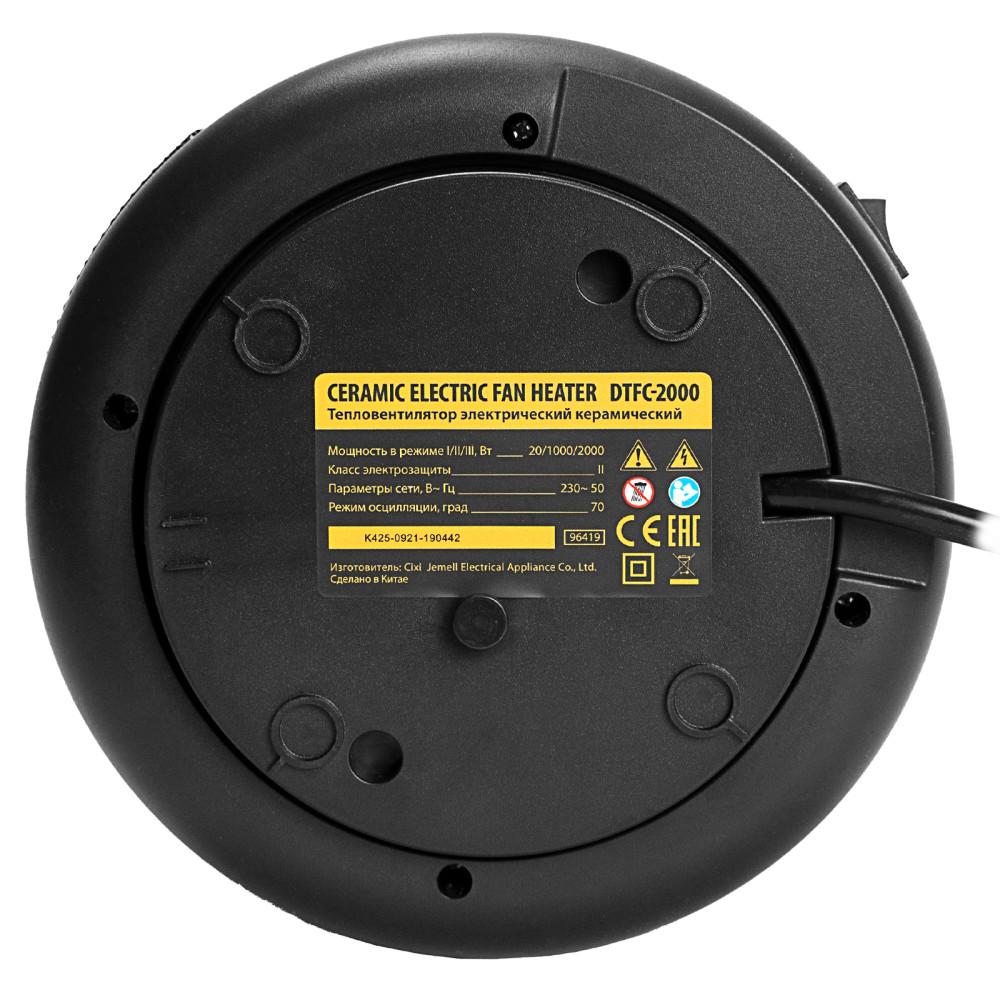 Тепловентилятор электрический керамический DTFC-2000, пульт, 3 режима, вентилятор, нагрев 1000/2000 Вт Denzel