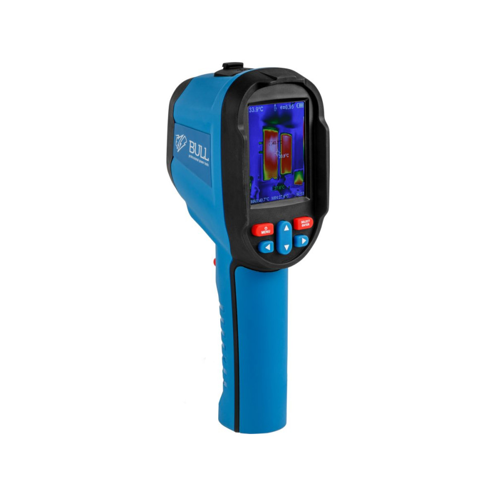 Тепловизор предназначен для выявление дефектов, возникших во время ремонтов, контроля проникновение влаги в помещение, проведения проверки изоляции, определения температуры и множество других. Инструмент обладает цифровой камерой, а также ИК датчиком для создания как цифровых изображений, так и термограмм. Присутствует возможность съема видео в формате MP4. Высокое разрешение ИК изображения достигается путем обработки данных от детектора (120х90 пикселей). Также присутствует функция автоматического распознавания горячей и холодной точки. Точки критических температур видно непосредственно на дисплее тепловизора. Полученные данные можно сохранять в виде снимков. Снимки и видео сохраняются на внутреннюю память устройства, емкость которой достигает 4 Гб, что соразмерно приблизительно 400 минутам беспрерывного видео. В режимном меню можно выбрать 5 палитр наложения, высококонтрастная цветная палитра используется в тех ситуациях, когда требуется показать тепловой контраст между низкой и высокими температурами. Обладает встроенным аккумулятором 3,7 В. Диапазон измеряемой температуры -20°C…+550°C. Тепловизор используется в строительстве, обладает пластмассовым корпусом. Имеет регулировку коэффициента излучения (изначально установлен 0,95) для более точного определения температур различных материалов. При подключении тепловизора к компьютеру присутствует возможность дополнительного анализа фотографий.