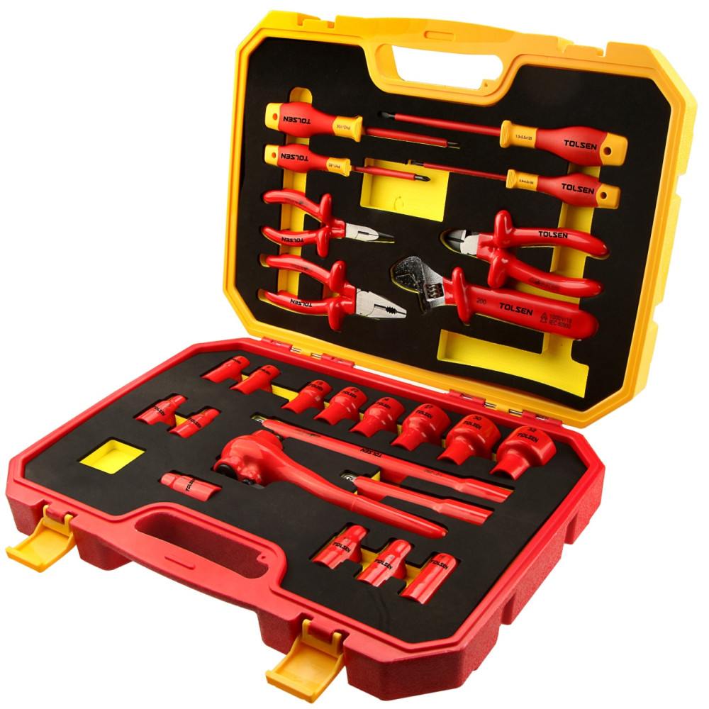 Материалы – сталь Cr-V, обливной PP (изоляция головок, принадлежностей, ключа, шарнирно-губцевого инструмента), PP+TPR (рукояти отвёрток), EVA (ложемент)
