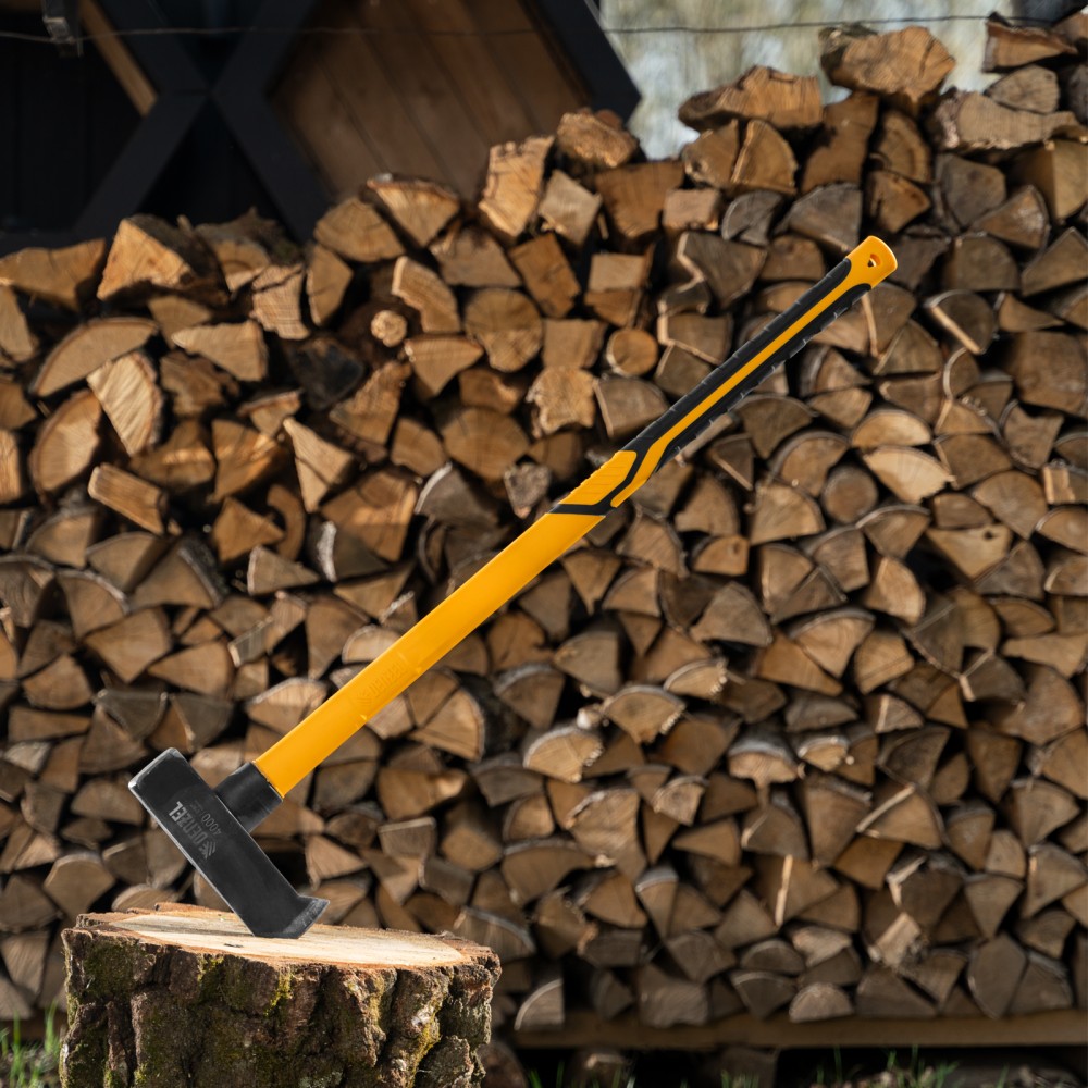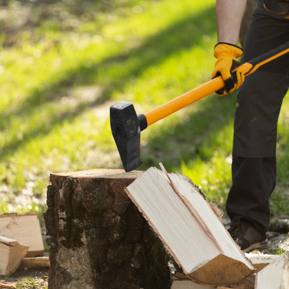 Кованый колун-кувалда Denzel 21852 весом 4000 г, с фибергласовой обрезиненной рукояткой длиной 880 мм, с TPR-покрытием, предназначен для колки древесины и проведения демонтажных работ: разрушения кирпичной кладки, камня, бетона, и других тяжелых ударных работ. Инструмент оптимален для профессионального применения.ПреимуществаВысокая прочность и износостойкость — рабочие части изготовлены из среднеуглеродистой стали 45 и закалены до твердости 48-50 HRC.Долговечность — фибергласовая рукоятка устойчива к механическим повреждениям и воздействиям внешней агрессивной среды.Работа без вреда для здоровья — обрезиненная рукоятка с толстым фибергласовым стержнем отлично поглощает отдачу при нанесении ударов.Комфорт и безопасность — резиновое рифленое покрытие (TPR) обеспечивает удобный хват и предотвращает скольжение рукоятки.