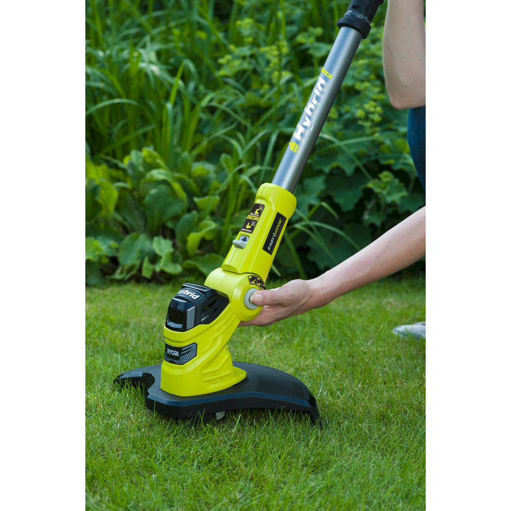 - Инновационная гибридная технология 18 В позволяет выбирать между использованием триммера с питанием от сети или аккумуляторной батареи.