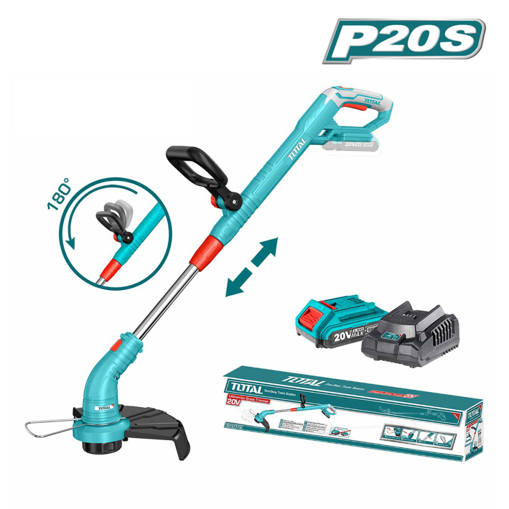 - Триммер TOTAL TGTLI20301 входит в линейку инструментов TOTAL P20S и совместим со всеми аккумуляторами TOTAL 20В - TFBLI20011, TFBLI2002, TFBLI2053.