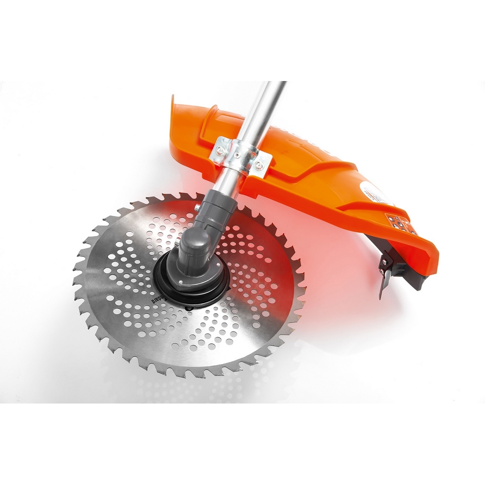 ✔ Режущий диск изготовлен из высокопрочной стали с твердосплавными напайками. 40 зубьев позволяют использовать его для кошения жесткой травы, кустарника и тонких стволов деревьев.