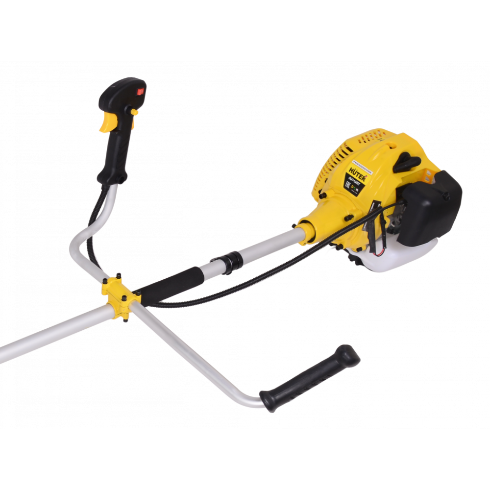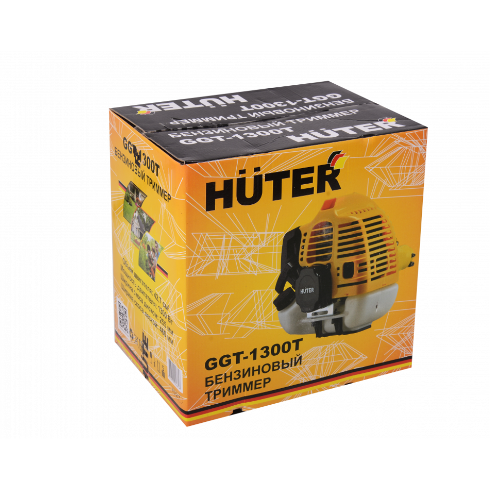 - Модель Huter GGT-1300T оснащена цельной металлической штангой. Органы управления располагаются на рукоятке. Стандартный ремень на одно плечо идет в комплекте с бензотриммером.
