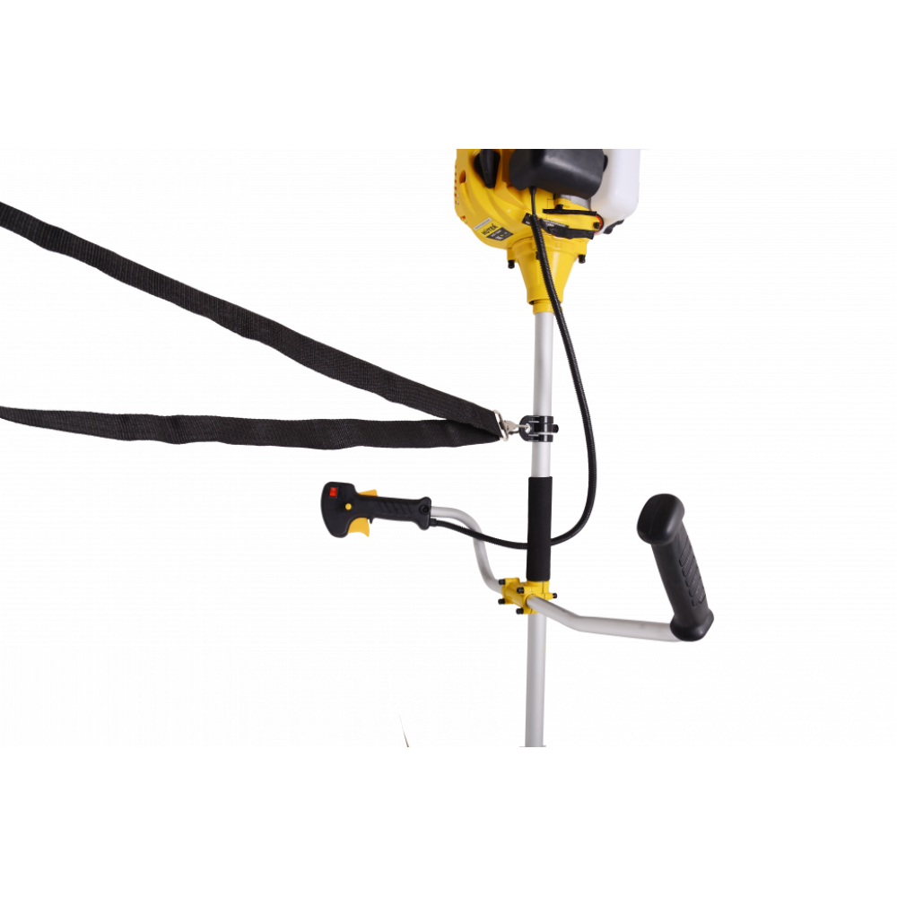 - Разъемная штанга удобна при хранении и транспортировке. Органы управления располагаются на рукоятке. Блокиратор курка газа позволяет избежать случайного нажатия курка. В комплектацию входит ремень «Стандарт», который можно перекинуть через плечо для удобства.