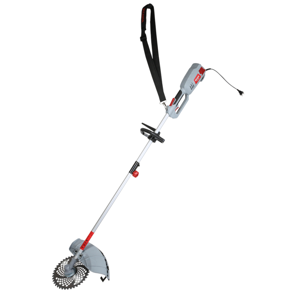 - Ширина полосы обработки за один проход составляет 42 см. Возможна установка разных типов насадок: леска (2 мм) для выравнивания газонов или диск 40TR с твердосплавными победитовыми напайками для удаления мелкой поросли кустарников. D-образная ручка облегчает маневрирование на клумбах и участках, где много препятствий. Электротриммер укомплектован ремнем на плечо. Его можно заменить на ранцевый, который равномернее распределяет нагрузку.