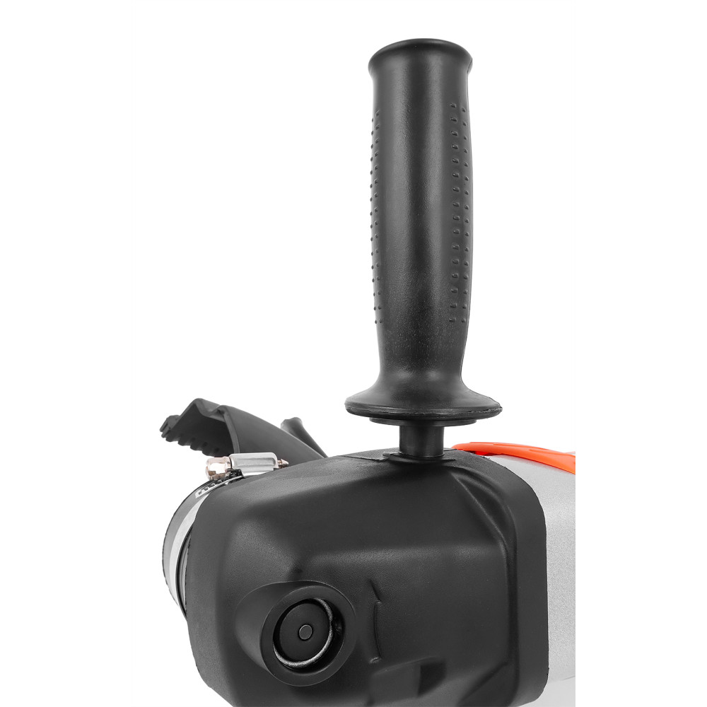 Шлифовально-полировальная машина MESSER M3017 поставляется в картонной коробке в комплекте с прямой и боковой рукоятками, защитным кожухом с крепежным хомутом, шлангом со штуцером для подачи воды, рожковым и шестигранным ключом.