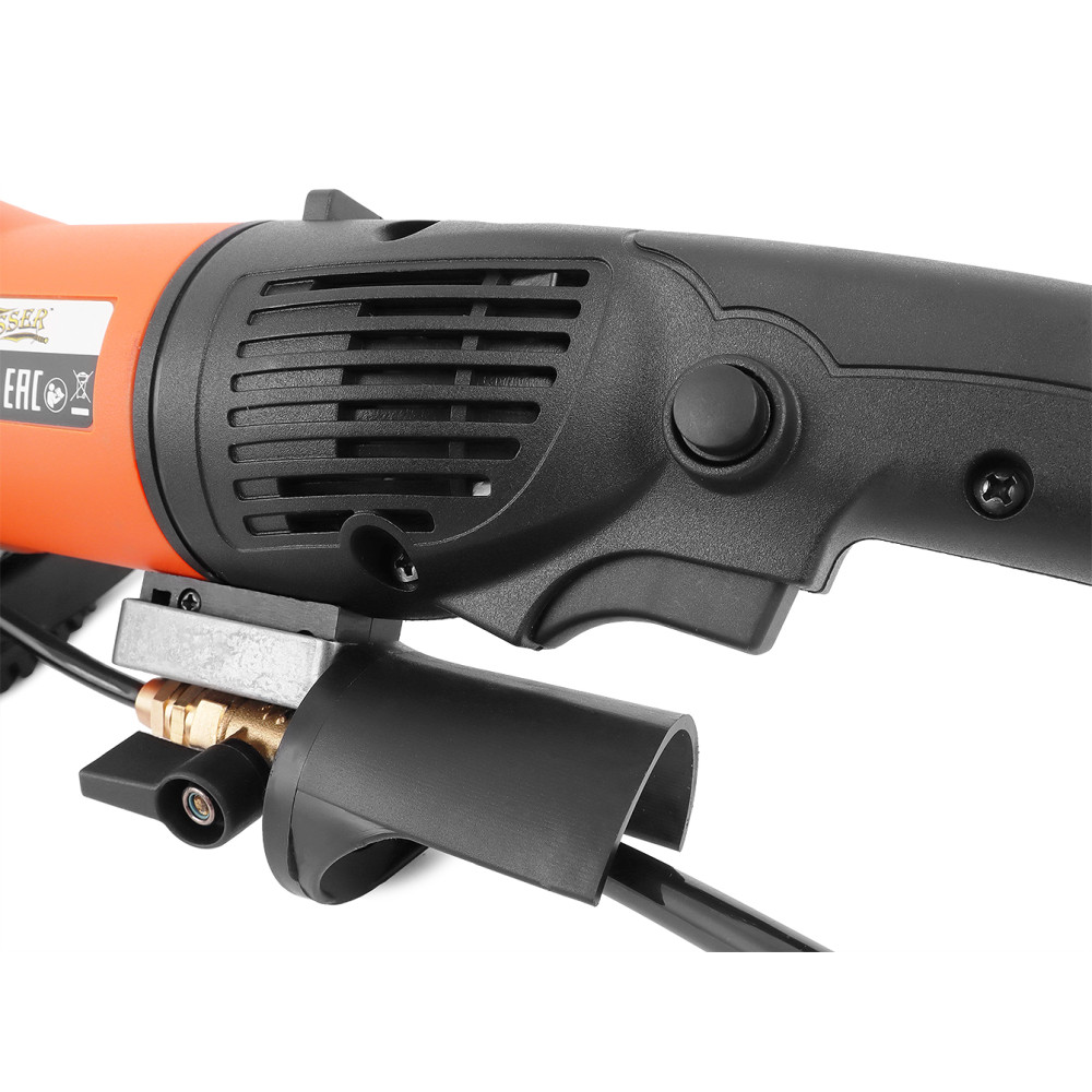 Шлифмашина MESSER M3017 имеет плавную регулировку оборотов, систему подачи воды (шланг в комплекте), а также резиновый пылезащитный кожух.