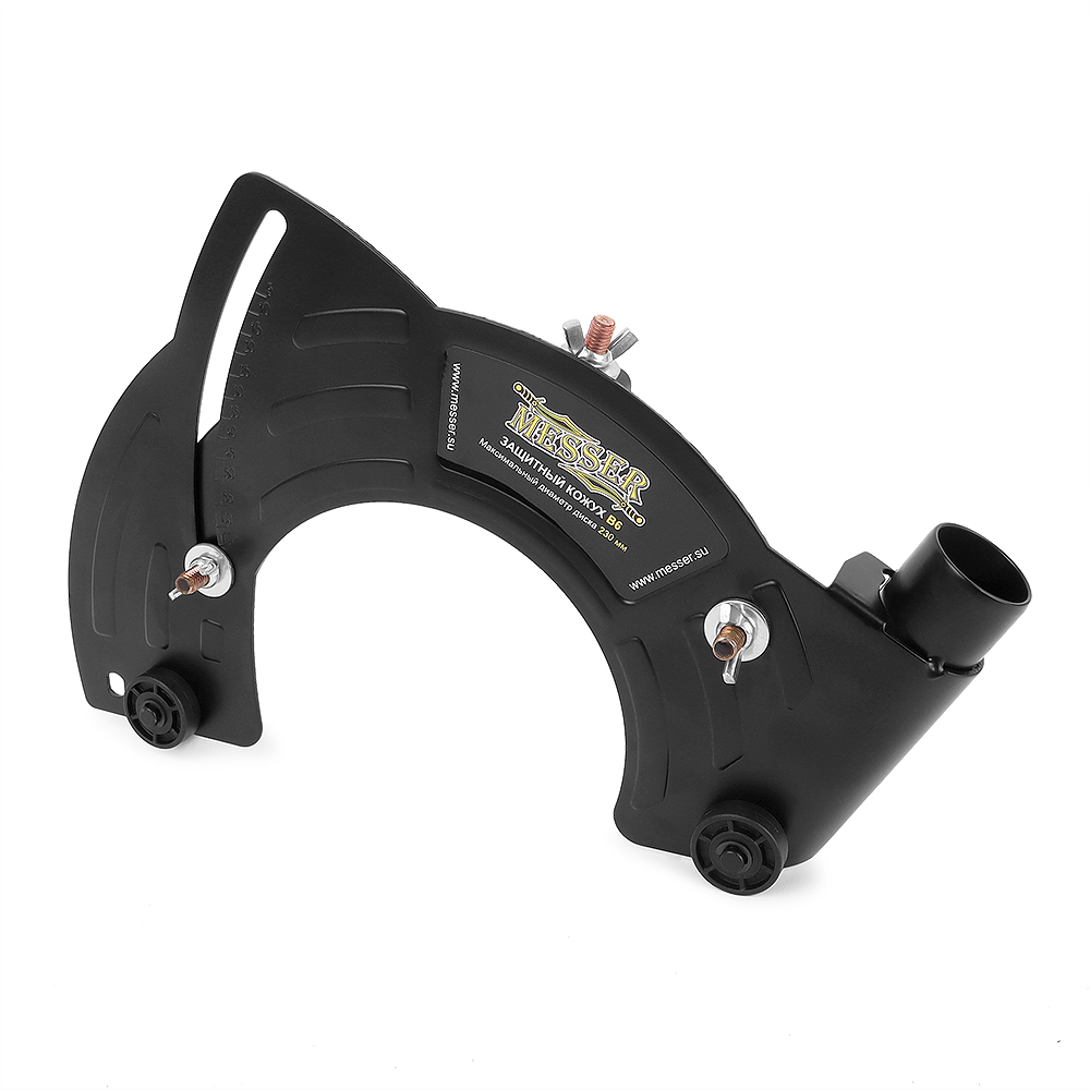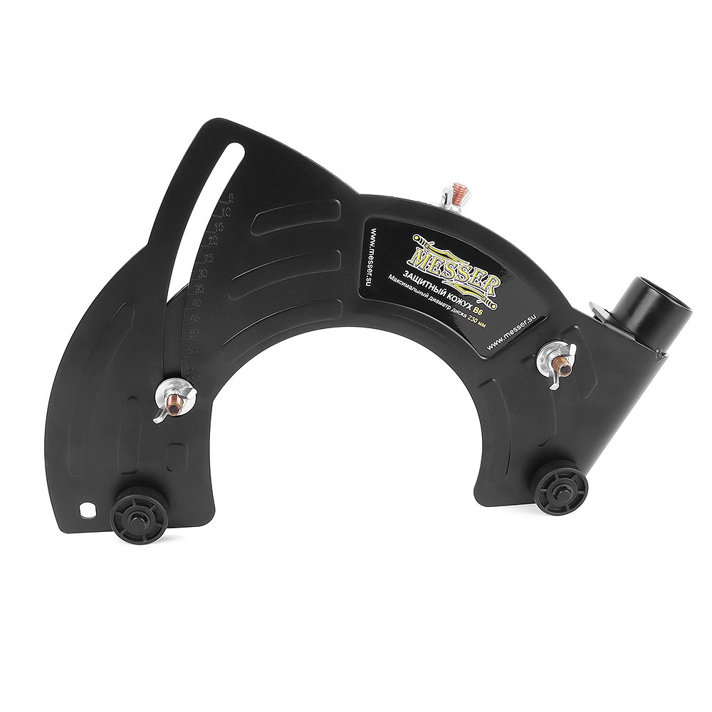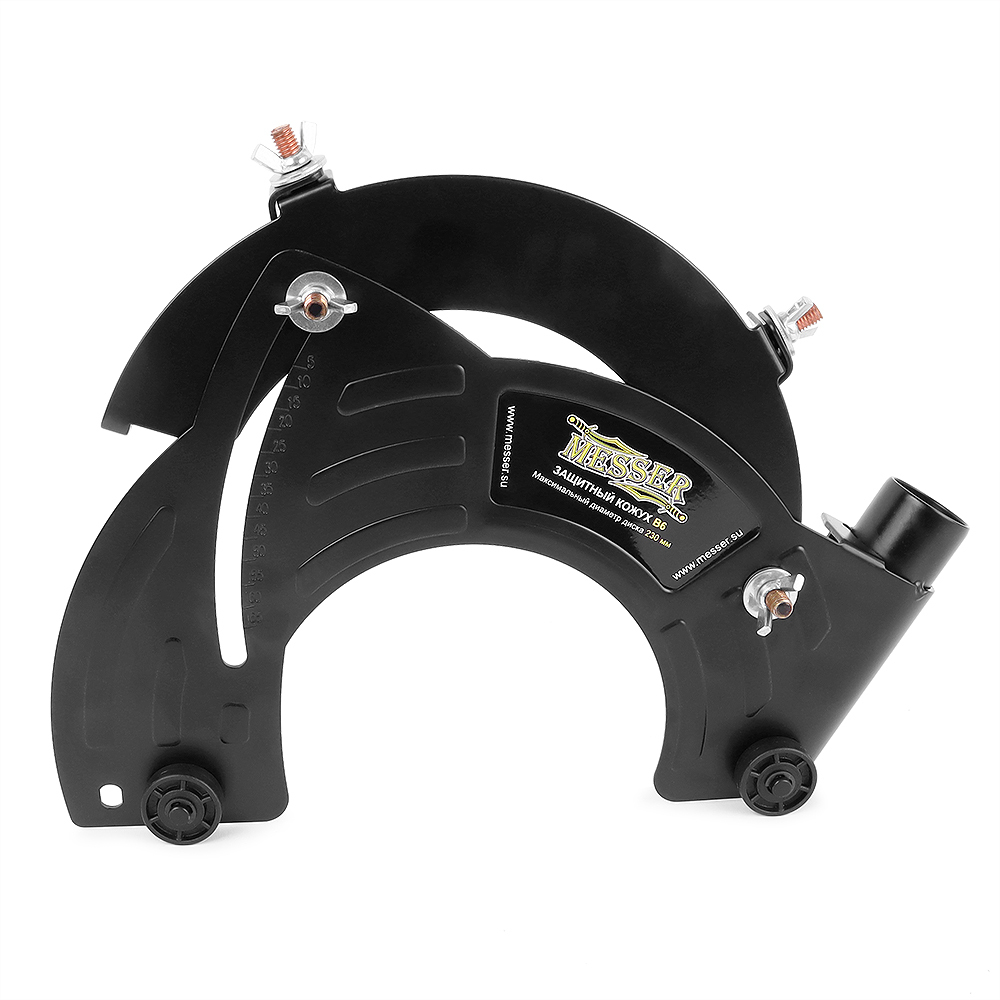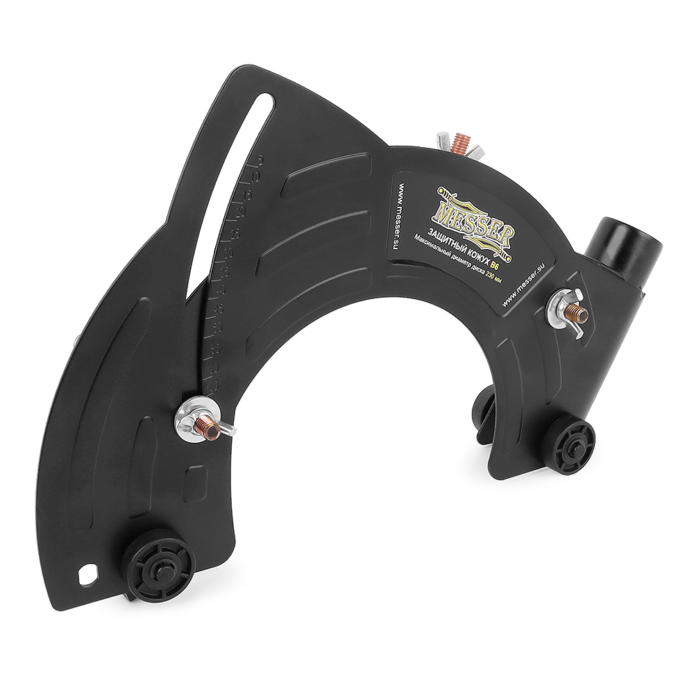 Насадка MESSER тип В6 устанавливается на стандартный кожух УШМ, предназначенной для резки диском 230 мм, с помощью установленных на нее зажимов.