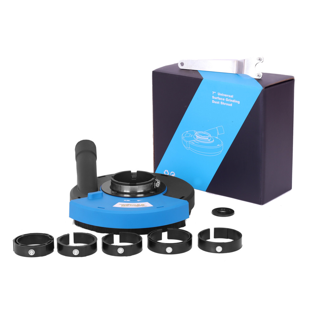Поставляется в картонной упаковке. В комплект поставки входят 5 проставочных пластиковых колец, фланец для УШМ и ключ.
