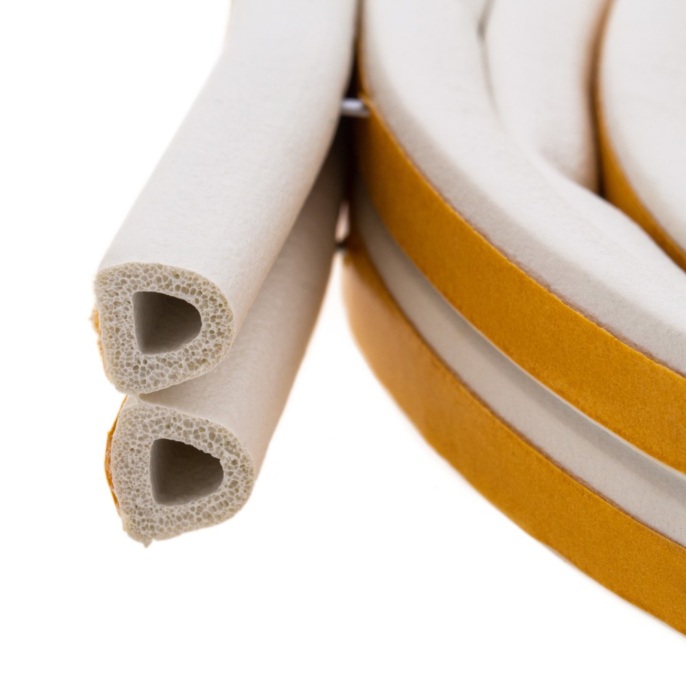 Белый резиновый уплотнитель Сибртех 88915 длиной 6 м, с профилем «D», предназначен для герметизации и уплотнения оконных и дверных блоков с целью предотвращения сквозняков и вибраций, защиты от влаги и пыли, создания эффективной тепло- и звукоизоляции. Клеевой слой обеспечивает высокую адгезию и надежную фиксацию. Использование уплотнителя позволяет значительно снизить энергетические и экономические затраты. Лента с D-профилем 9 х 8 мм подойдет для щелей размером 3-7 мм.ПреимуществаДолговечность — уплотнитель изготовлен из износостойкой вспененной резины EPDM.Устойчивость к разрушению — утеплитель не боится воздействия ультрафиолета.Эластичность — уплотнитель легко восстанавливает форму после сжатия, не твердеет в течение всего срока использования.Надежность — материал уплотнителя водонепроницаем и выдерживает большие колебания температуры.Удобное хранение — бумажная лента защищает клейкий слой от высыхания.
