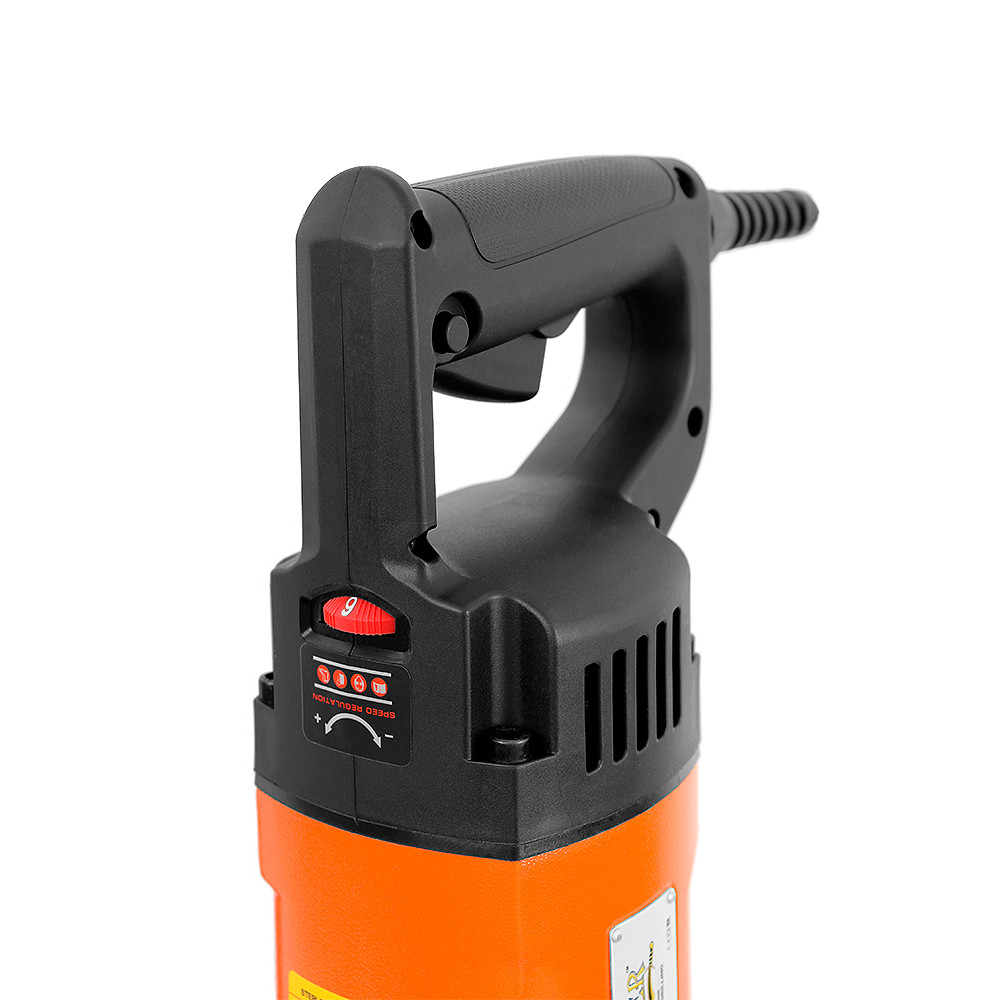 Мощность 2,3 кВт и широкий выбор скоростных режимов позволяет работать алмазными коронками до 165 мм. Причем можно использовать коронки с хвостовиками 1 1/4" и 1/2" без использования переходников.