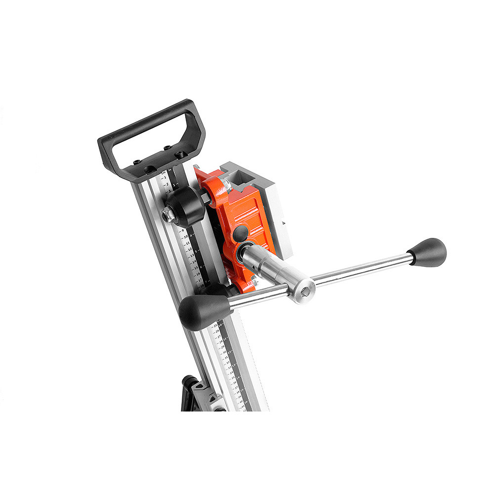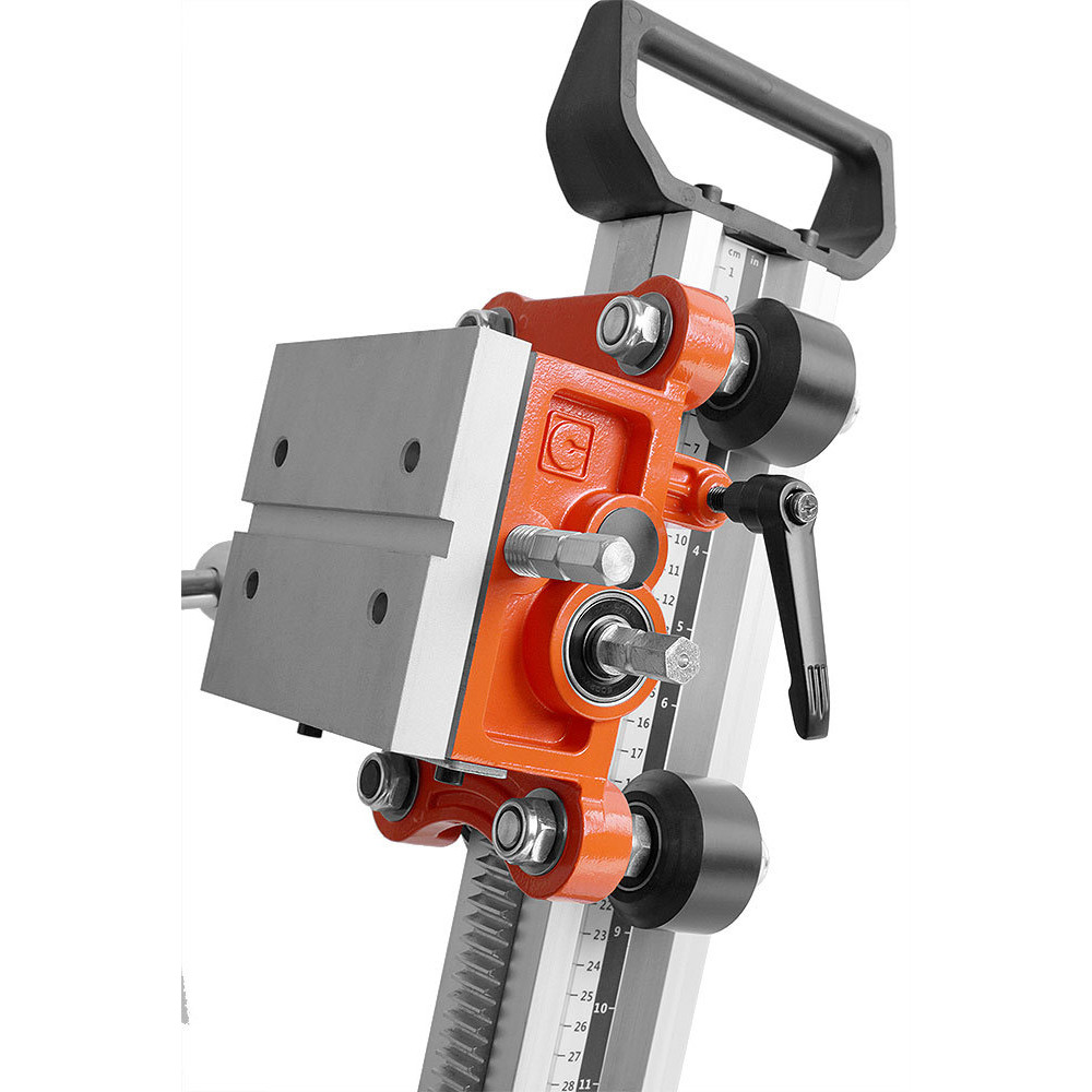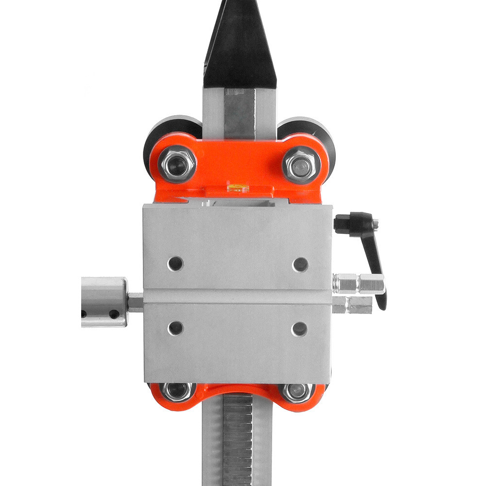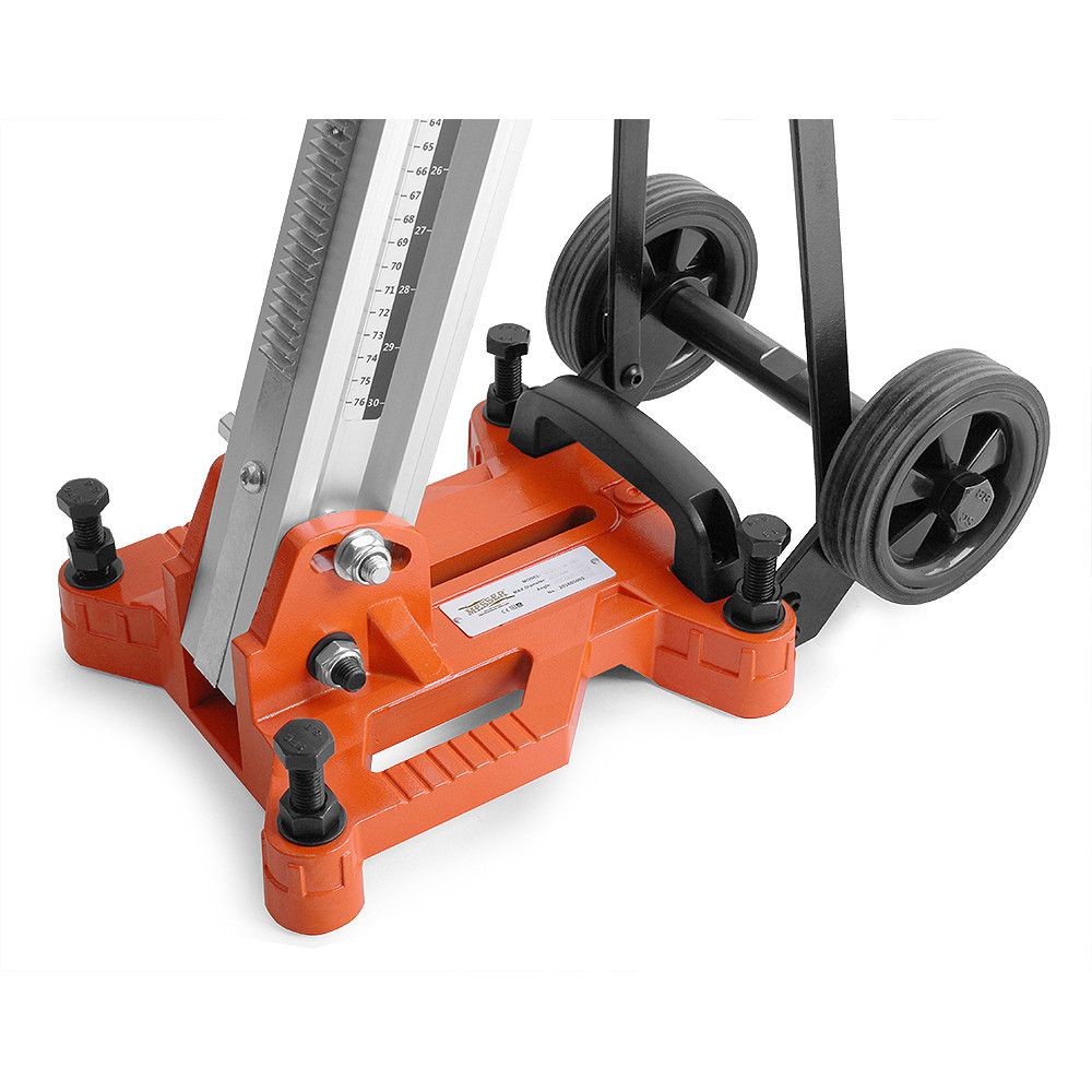 Стойка MESSER SА-180 для установок алмазного бурения, позволяющая работать алмазными коронками диаметром до 180 мм. Крепление двигателя осуществляется с помощью быстросъемной плиты. Многофункциональный штурвал может быть использован для регулировки узлов стойки. Стойка позволяет производить бурение под наклоном до 45 градусов. Рейка из алюминиевого сплава заметно уменьшает вес стойки. Прорезиненные транспортировочные колеса облегчают перемещение установки. Пузырьковый уровень помогает точно выставить установку, что не допустить излишнего износа и закусывания алмазной коронки. Рекомендована к использованию с двигателем MESSER DM-180, но также может применяться с двигателями других производителей.