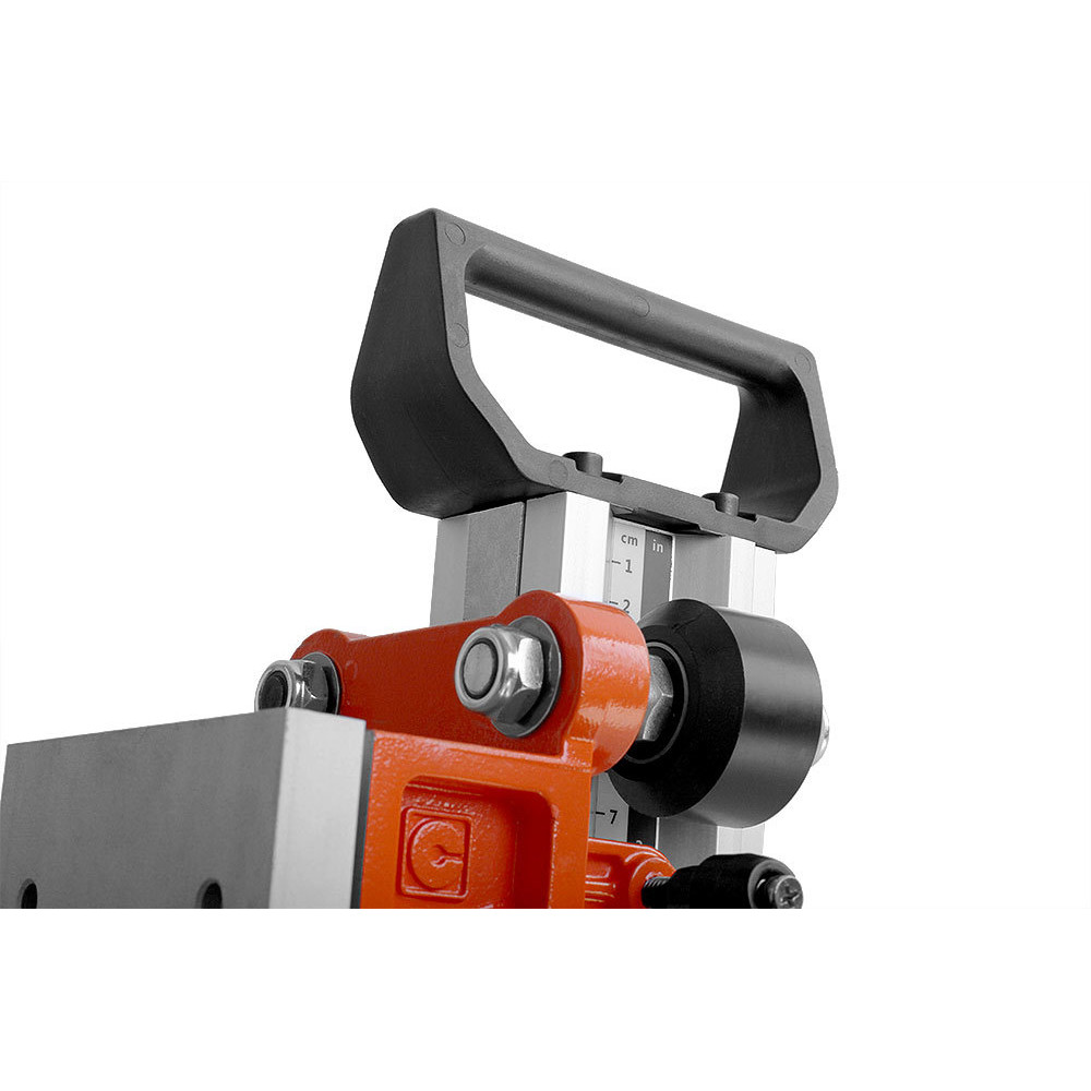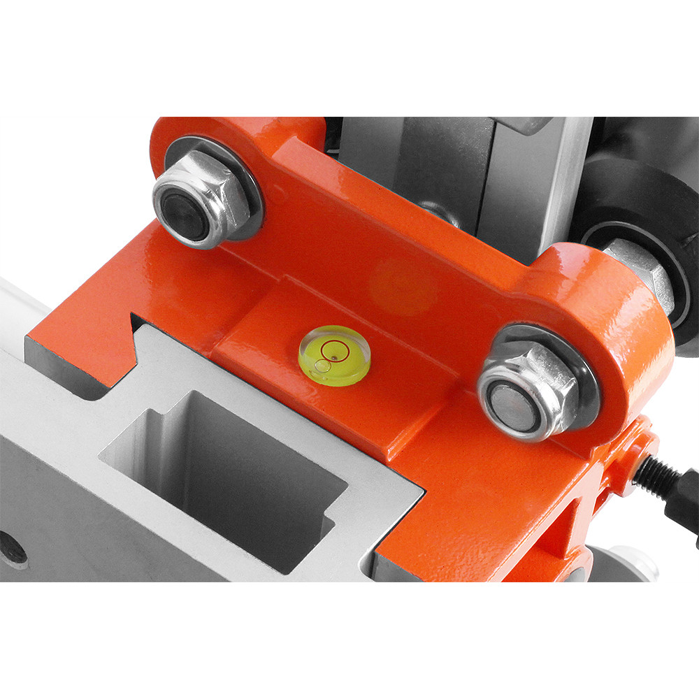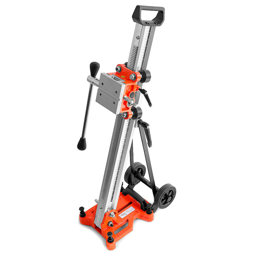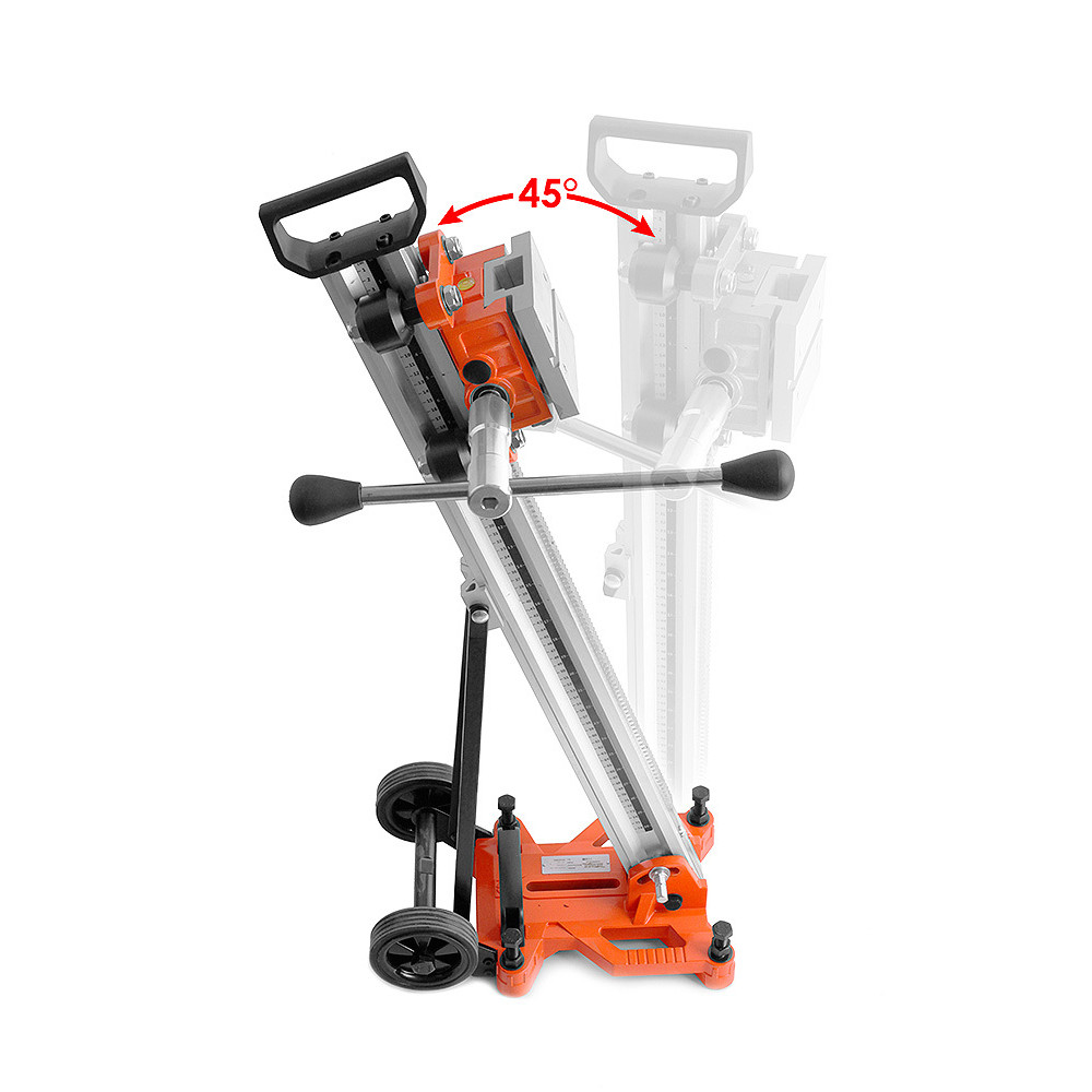 Стойка MESSER SА-180 для установок алмазного бурения, позволяющая работать алмазными коронками диаметром до 180 мм. Крепление двигателя осуществляется с помощью быстросъемной плиты. Многофункциональный штурвал может быть использован для регулировки узлов стойки. Стойка позволяет производить бурение под наклоном до 45 градусов. Рейка из алюминиевого сплава заметно уменьшает вес стойки. Прорезиненные транспортировочные колеса облегчают перемещение установки. Пузырьковый уровень помогает точно выставить установку, что не допустить излишнего износа и закусывания алмазной коронки. Рекомендована к использованию с двигателем MESSER DM-180, но также может применяться с двигателями других производителей.