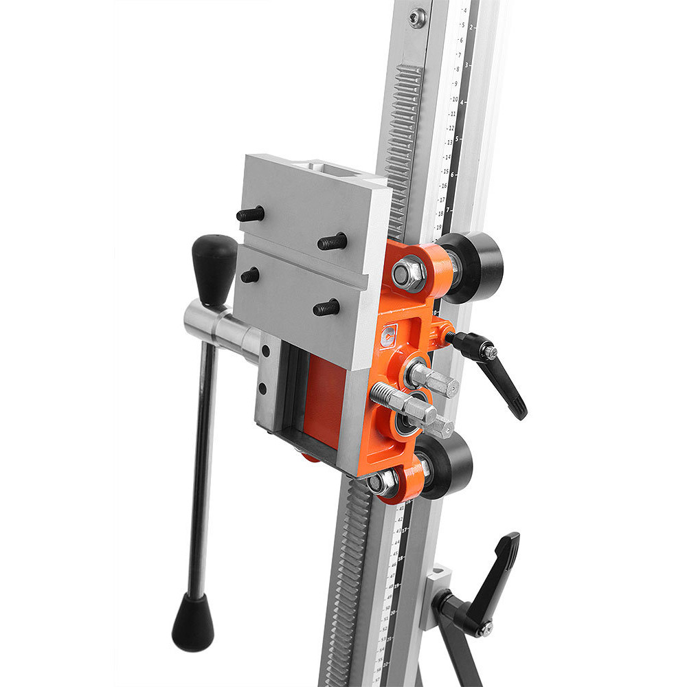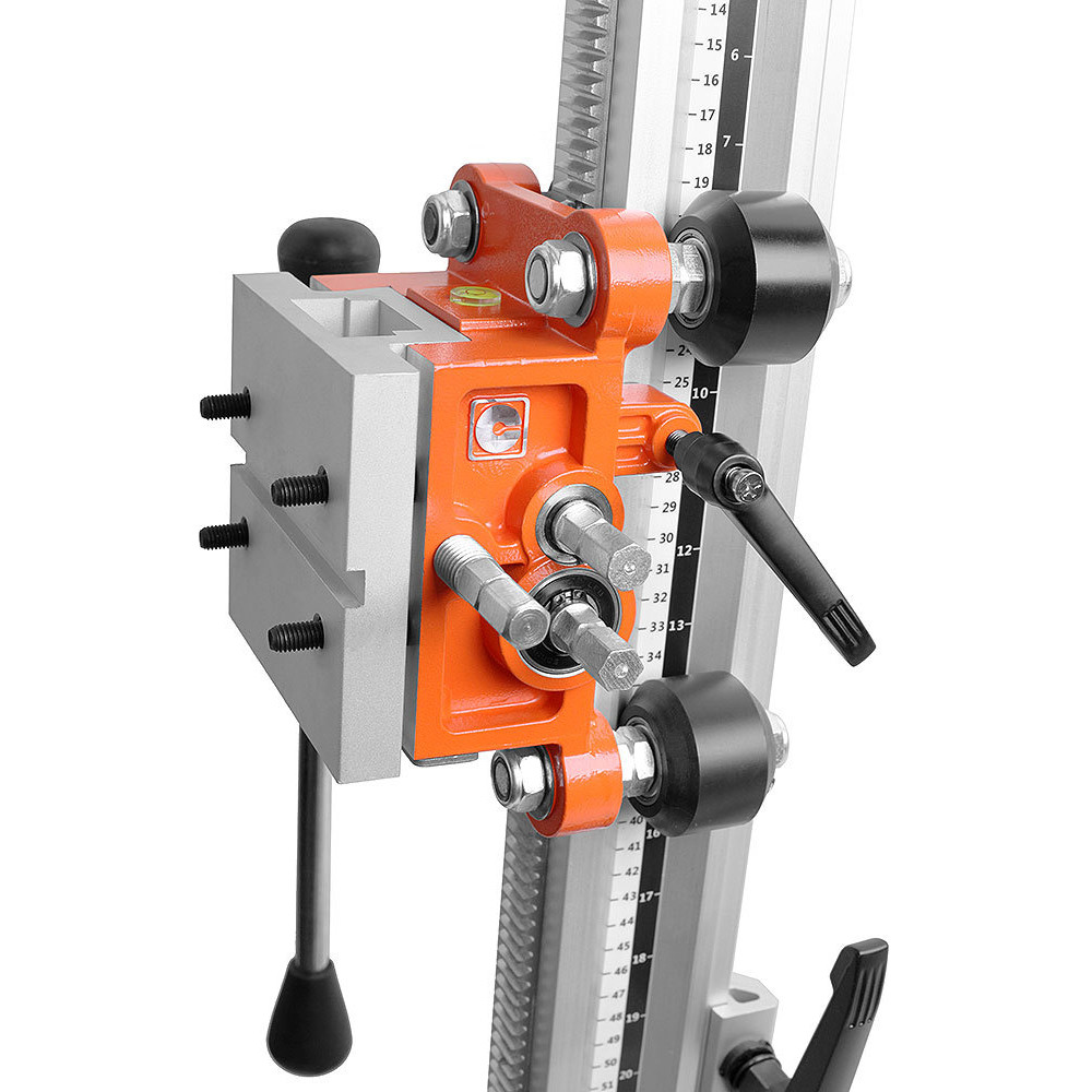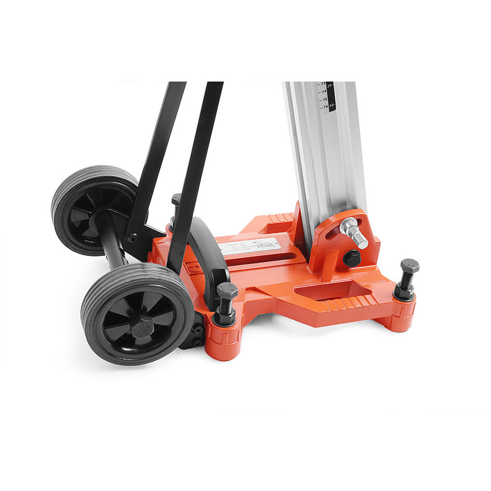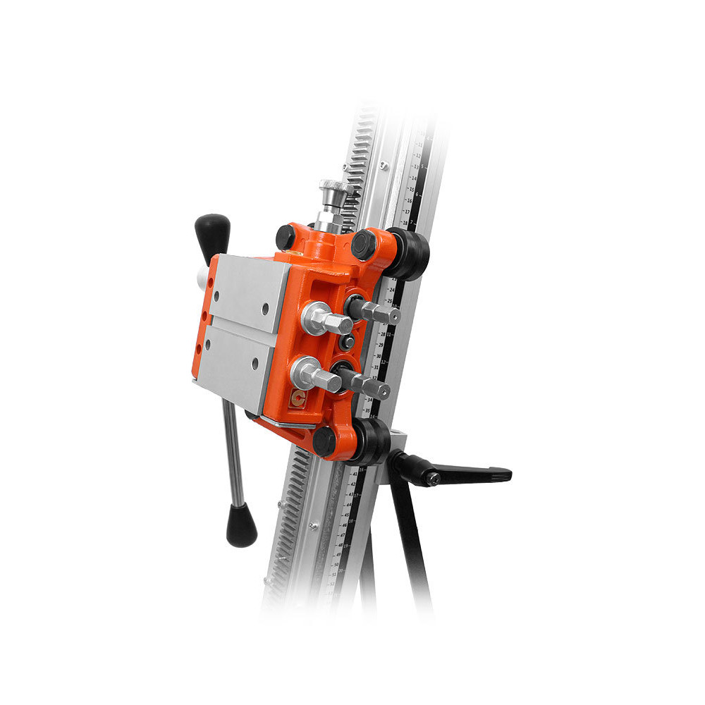 Стойка MESSER SА-400 для установок алмазного бурения, позволяющая работать алмазными коронками диаметром до 400 мм. Крепление двигателя осуществляется с помощью быстросъемной плиты. Многофункциональный штурвал может быть использован для регулировки узлов стойки. Стойка позволяет производить бурение под наклоном до 45 градусов. Рейка из алюминиевого сплава заметно уменьшает вес стойки. Прорезиненные транспортировочные колеса облегчают перемещение установки. Пузырьковый уровень помогает точно выставить установку, что не допустить излишнего износа и закусывания алмазной коронки. Рекомендована к использованию с двигателем MESSER DM-350, но также может применяться с двигателями других производителей.