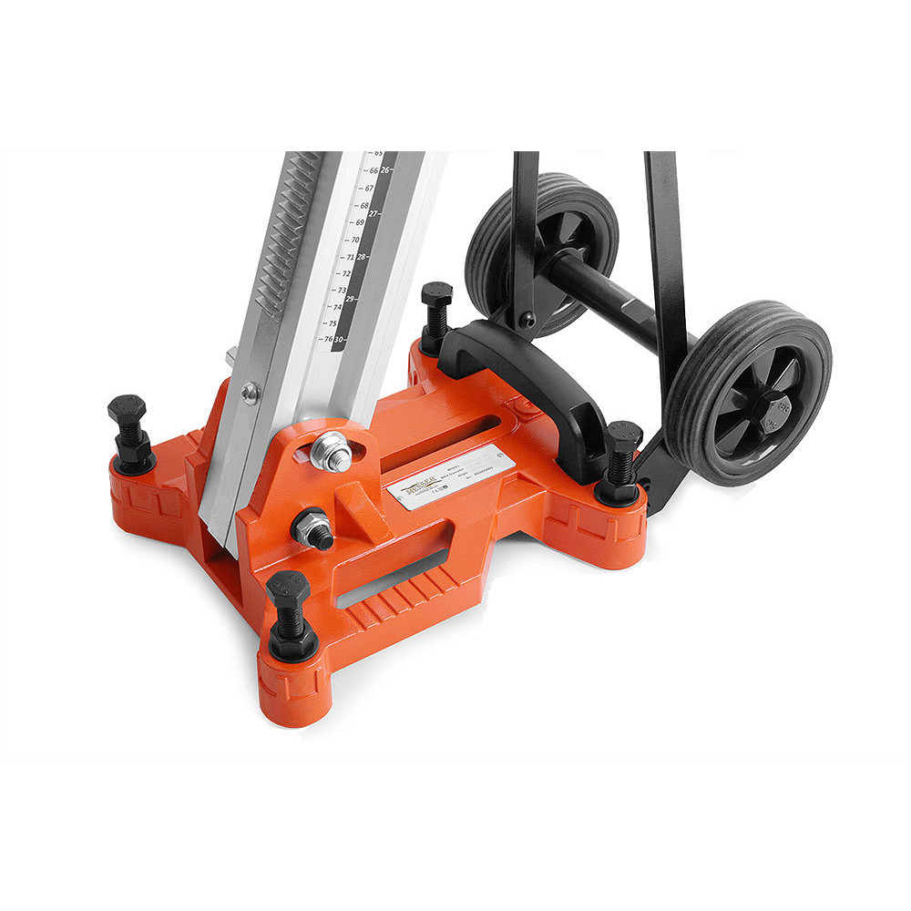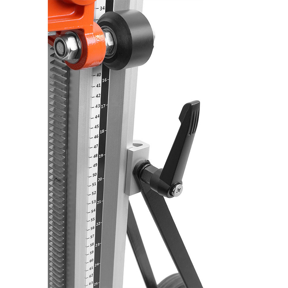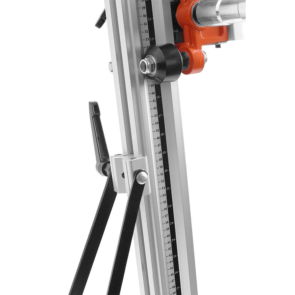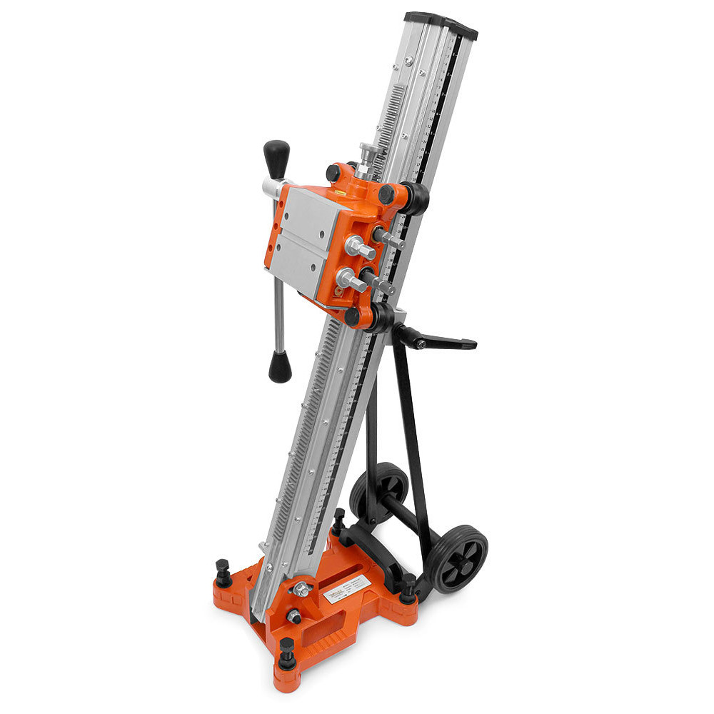 Стойка MESSER SА-400 для установок алмазного бурения, позволяющая работать алмазными коронками диаметром до 400 мм. Крепление двигателя осуществляется с помощью быстросъемной плиты. Многофункциональный штурвал может быть использован для регулировки узлов стойки. Стойка позволяет производить бурение под наклоном до 45 градусов. Рейка из алюминиевого сплава заметно уменьшает вес стойки. Прорезиненные транспортировочные колеса облегчают перемещение установки. Пузырьковый уровень помогает точно выставить установку, что не допустить излишнего износа и закусывания алмазной коронки. Рекомендована к использованию с двигателем MESSER DM-350, но также может применяться с двигателями других производителей.