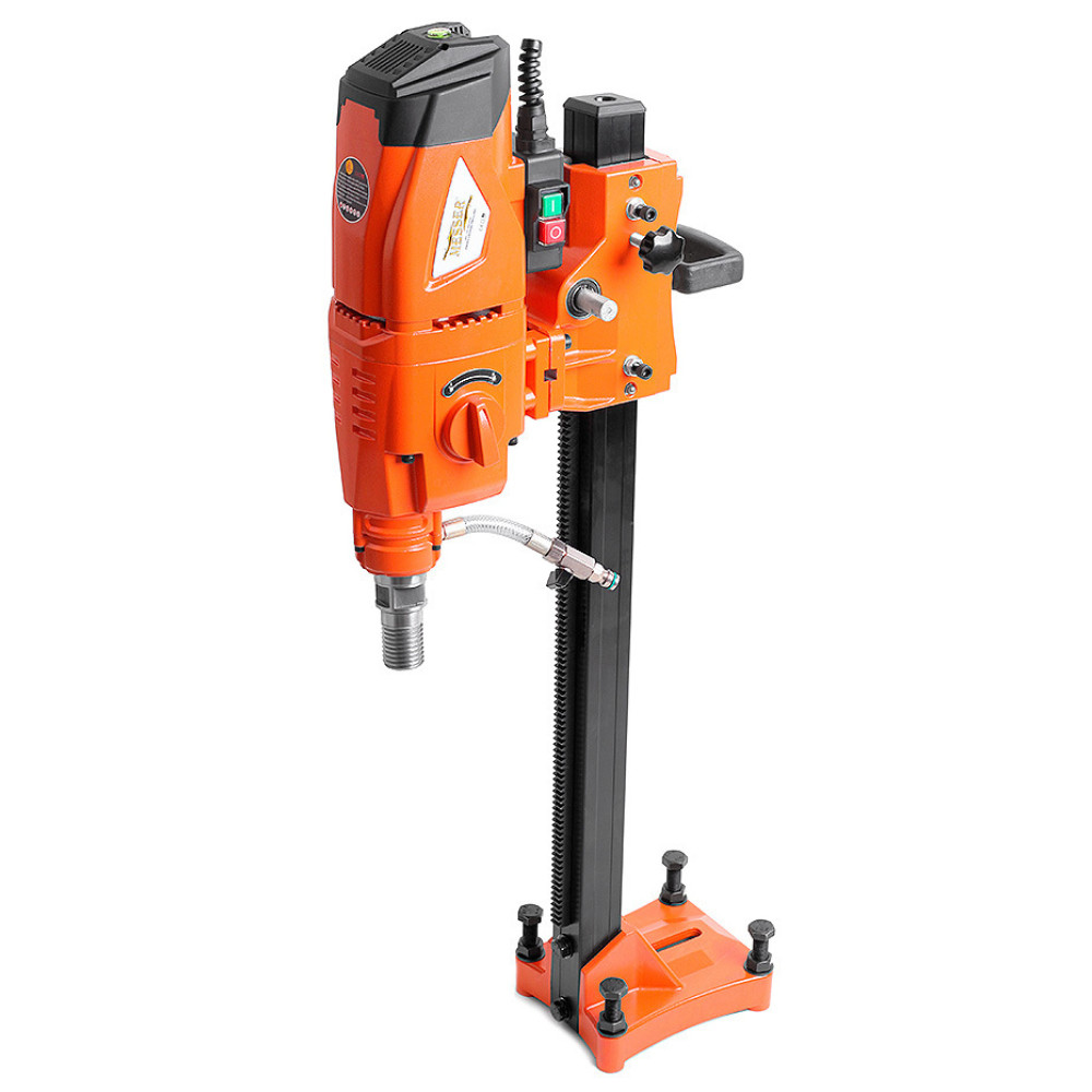 Способен эффективно работать с алмазными коронками диаметром до 250 мм. Традиционно имеет универсальный шпиндель под коронки с хвостовиками ½ и 1¼ дюйма, систему защиты от поражения электрическим током PRCD, плавный пуск и защиту двигателя от перегрузок. Корпус двигателя изготовлен из металла.