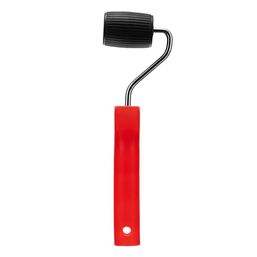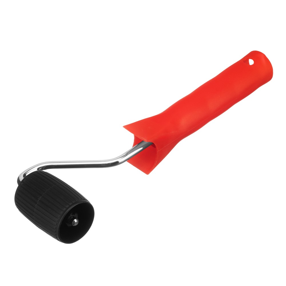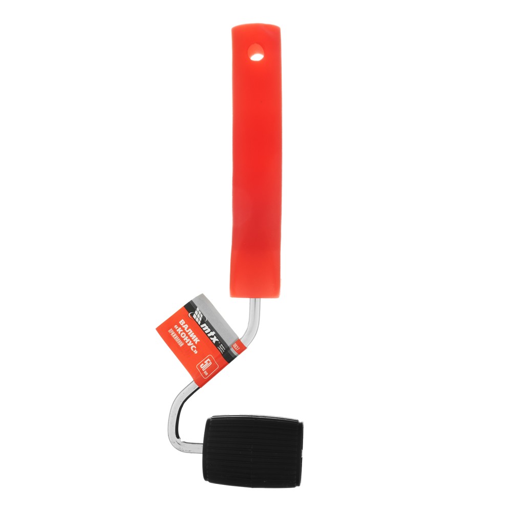 Прижимной валик MTX «Конус» 80637 из пластмассы, шириной 50 мм, с ручкой 6 мм, предназначен для прикатки швов при наклеивании обоев. Его применение повышает качество работ — валик с ровной поверхностью плотно прижимает и разглаживает обойное полотно, удаляя воздушные пузырьки.ПреимуществаПрочность — металлический бюгель не сломается при надавливании.Облегченная конструкция — рукоятка и валик изготовлены из пластмассы, инструмент весит всего 83 г, поэтому рука не устает во время длительной работы.Комфортная работа — рукоятка особой формы с упорами для пальцев обеспечивает надежный хват.
