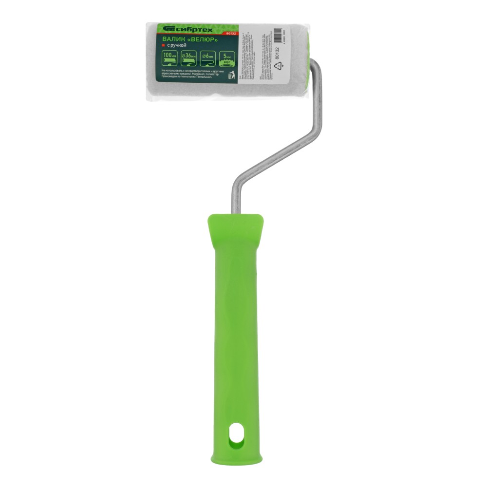 Валик Сибртех «ВЕЛЮР» 80132 с ручкой 6 мм, роликом 100 х 36 мм и ворсом 5 мм, применяется для окрашивания гладких поверхностей. Обеспечивает нанесение материалов максимально тонким слоем, поэтому оптимален для работы с лаками. Велюровая шубка изготовлена из натуральной шерсти с полиакрилом, что повышает износостойкость валика.ПреимуществаНадежная конструкция — фланцы приварены ультразвуком, поэтому валик не деформируется даже при частой установке и снятии с бюгеля.Легкий демонтаж — быстросъемная система крепления ролика позволяет чистить его без ручки и менять в случае изнашивания.Прочность — шубка приклеена к ролику термическим способом (технология Termofusion), поэтому не отслаивается при многократном использовании.Долговечность — оцинкованный бюгель отличается высокой стойкостью к образованию коррозии.Эффективное окрашивание — ролик вращается свободно, что повышает коэффициент отдачи краски и делает работу более комфортной.Компактность — за счет небольшой ширины 100 мм валиком удобно работать в труднодоступных местах.