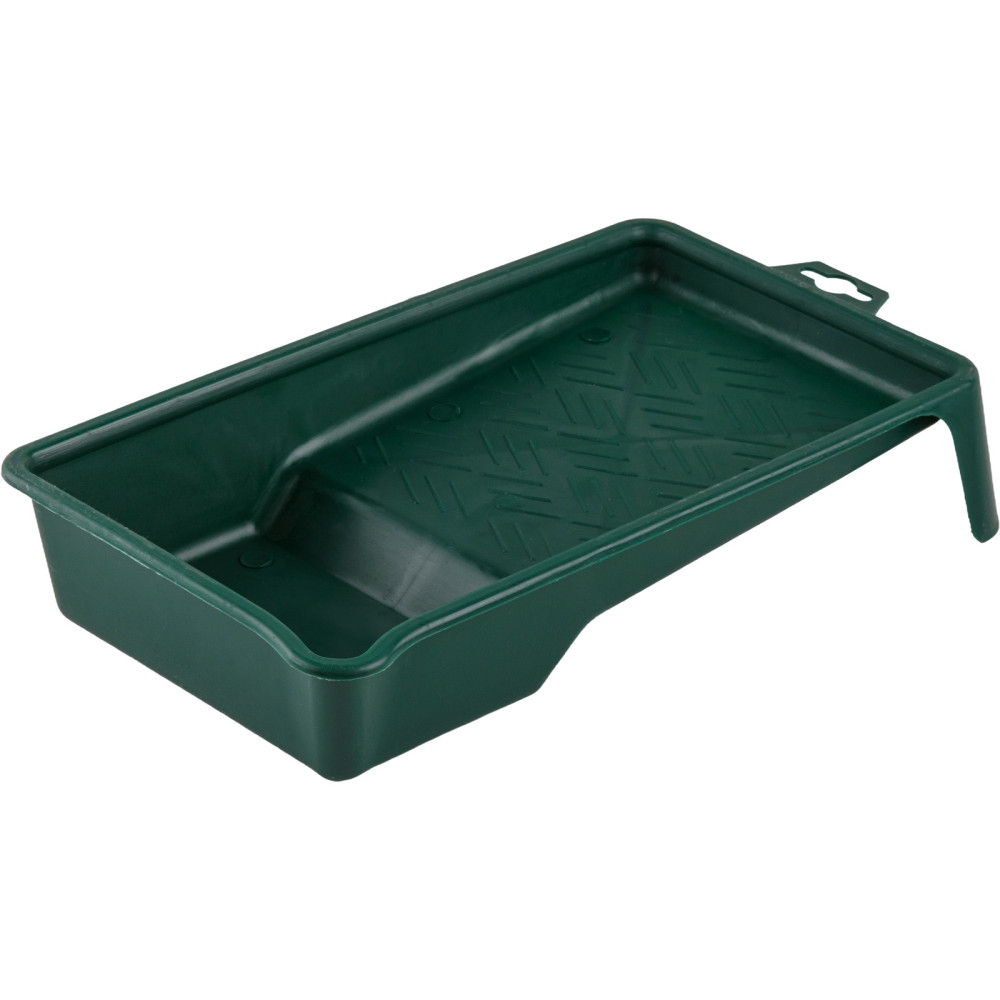 Описание: изделие выполнено из ударопрочного пластика, устойчивого к действию растворителей, позволяет использовать большинство ЛКМ. Конструкция двухуровневая - углубление для краски и рифленая площадка для валика. Изделие оснащено ножками для устойчивости и кронштейном для крепления под крюк,