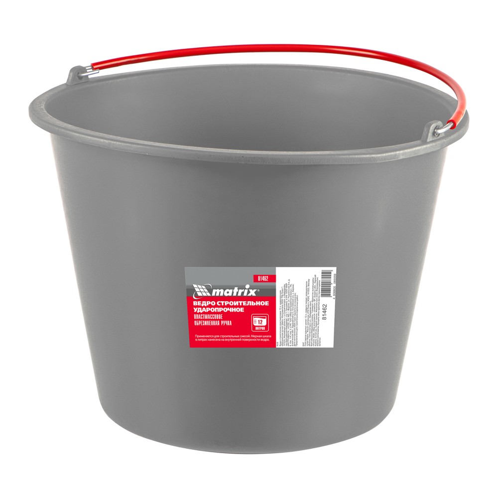 Ударопрочное пластмассовое ведро Matrix 81462 объемом 12 л, с обрезиненной рукояткой, используется во время проведения строительных и отделочных работ. В нем можно замешивать строительные растворы, хранить и перемещать жидкие и сыпучие материалы. На внутренней поверхности имеется шкала, позволяющая отмерять необходимое количество раствора.ПреимуществаОптимальное сочетание прочности, легкости и эластичности — при изготовлении использован вторичный полипропилен, устойчивый к высоким механическим нагрузкам.Универсальность — ведро можно использовать при достаточно низких температурах, оно подходит для работы с разнообразными типами строительных смесей и растворов.Простой уход — остатки содержимого можно легко счистить со стенок.Удобное перемещение — ведро оснащено металлической обрезиненной рукояткой.