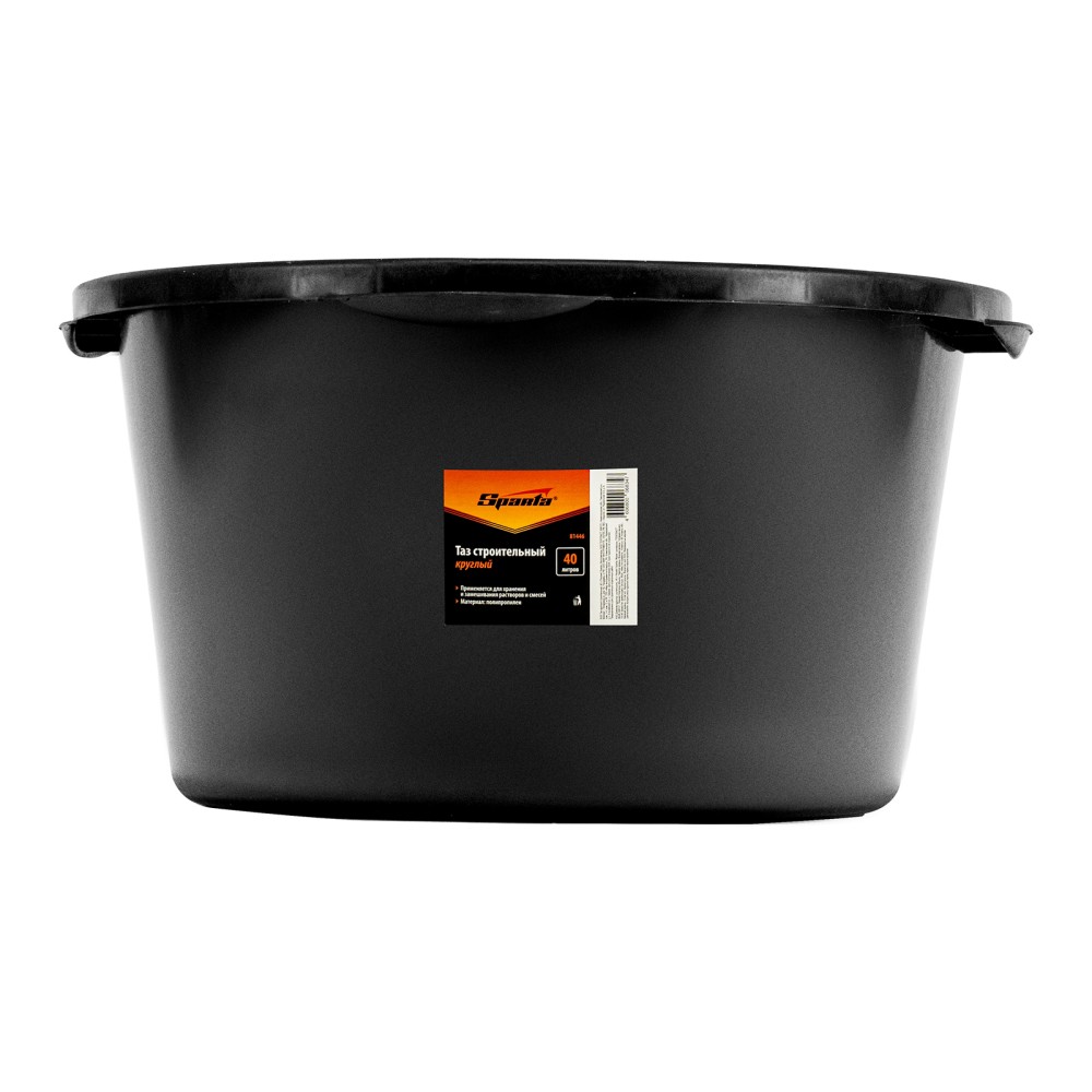 Круглый строительный таз Sparta 81446 объемом 40 л предназначен для разведения строительных смесей. Также он используется для хранения и перемещения жидкостей и сыпучих материалов.ПреимуществаДолговечность — таз изготовлен из пластика и не подвержен коррозии.Комфортное использование — круглая форма удобна для замешивания растворов.Удобная транспортировка — на верхнем крае есть выступы, облегчающие перемещение таза.