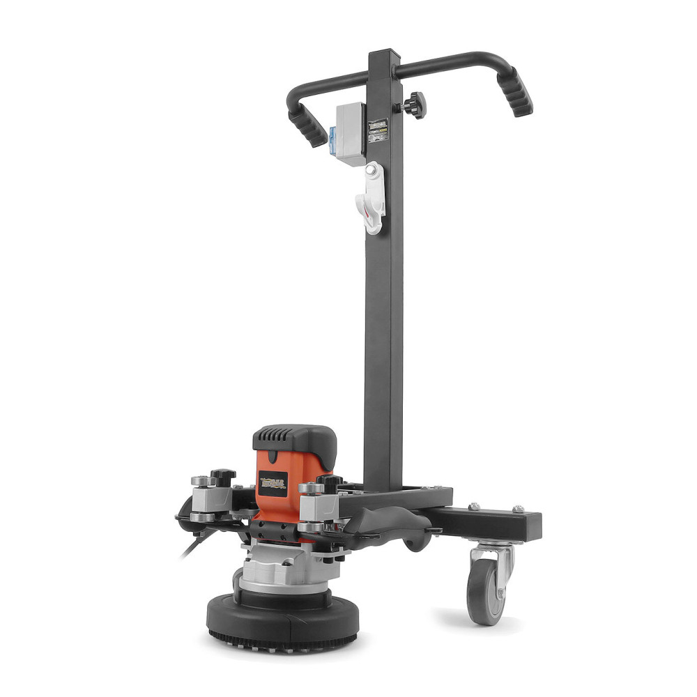 Два независимых колеса станины вращаются на 360 градусов и позволяют оператору неутомительно управлять шлифователем в любых направлениях.