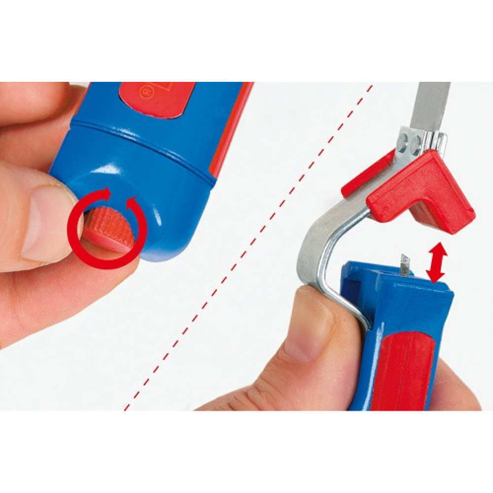 Новое поколение кабельных ножей с корпусом из высокопрочного пластика. Быстрое и безопасное снятие ПВХ оболочки всех стандартных круглых кабелей диаметром от 4 до 16 мм. Кабельные ножи имеют эргономичный, нескользящий в руках, корпус.