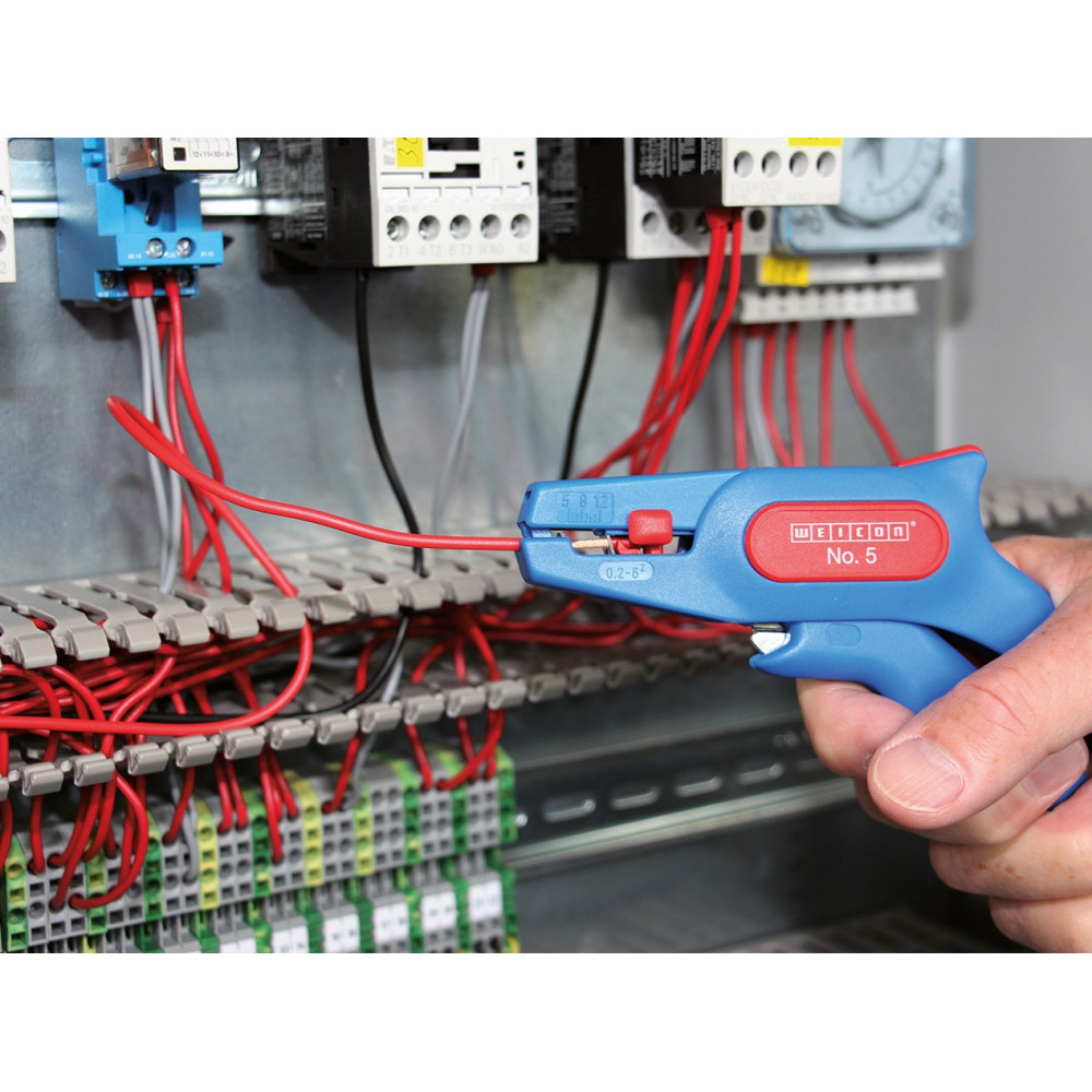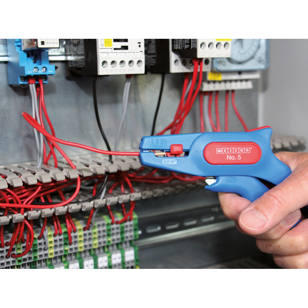 Легкий и удобный в работе, автоматический стриппер № 5 Weicon для снятия изоляции с круглых кабелей и проводов.