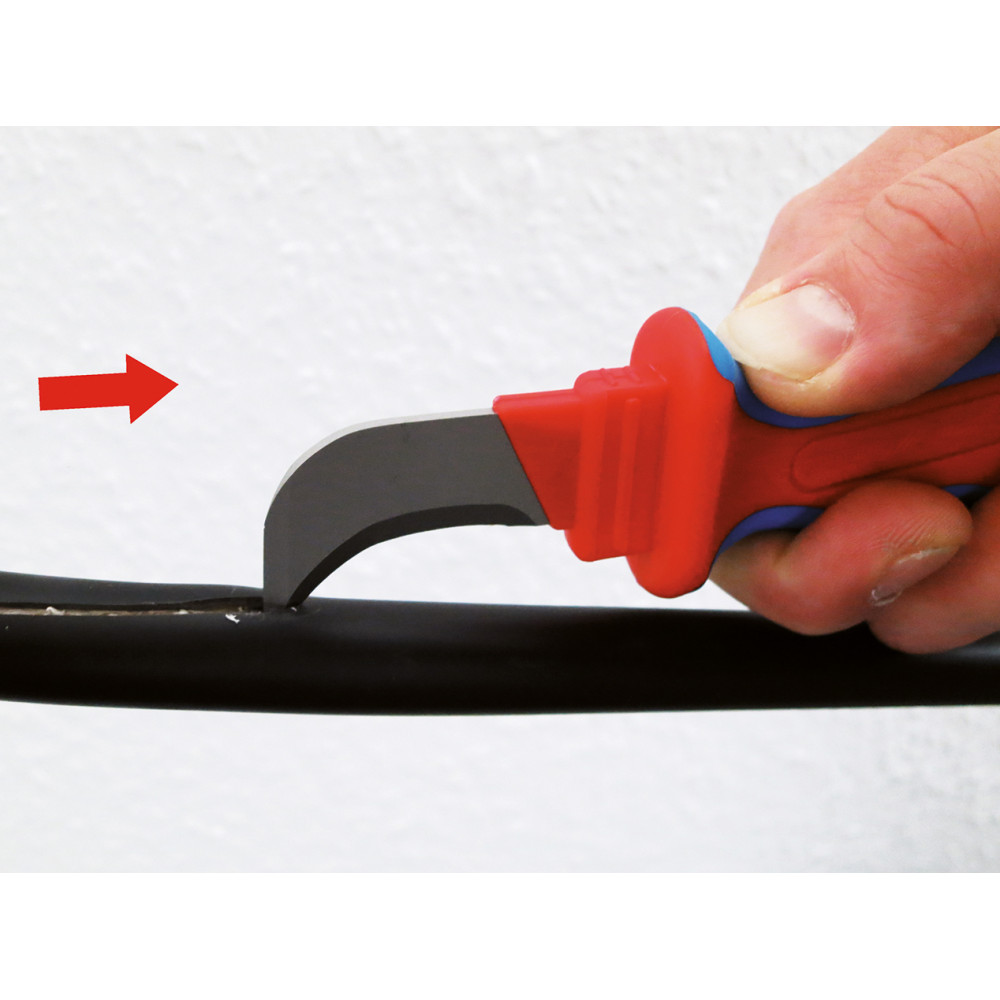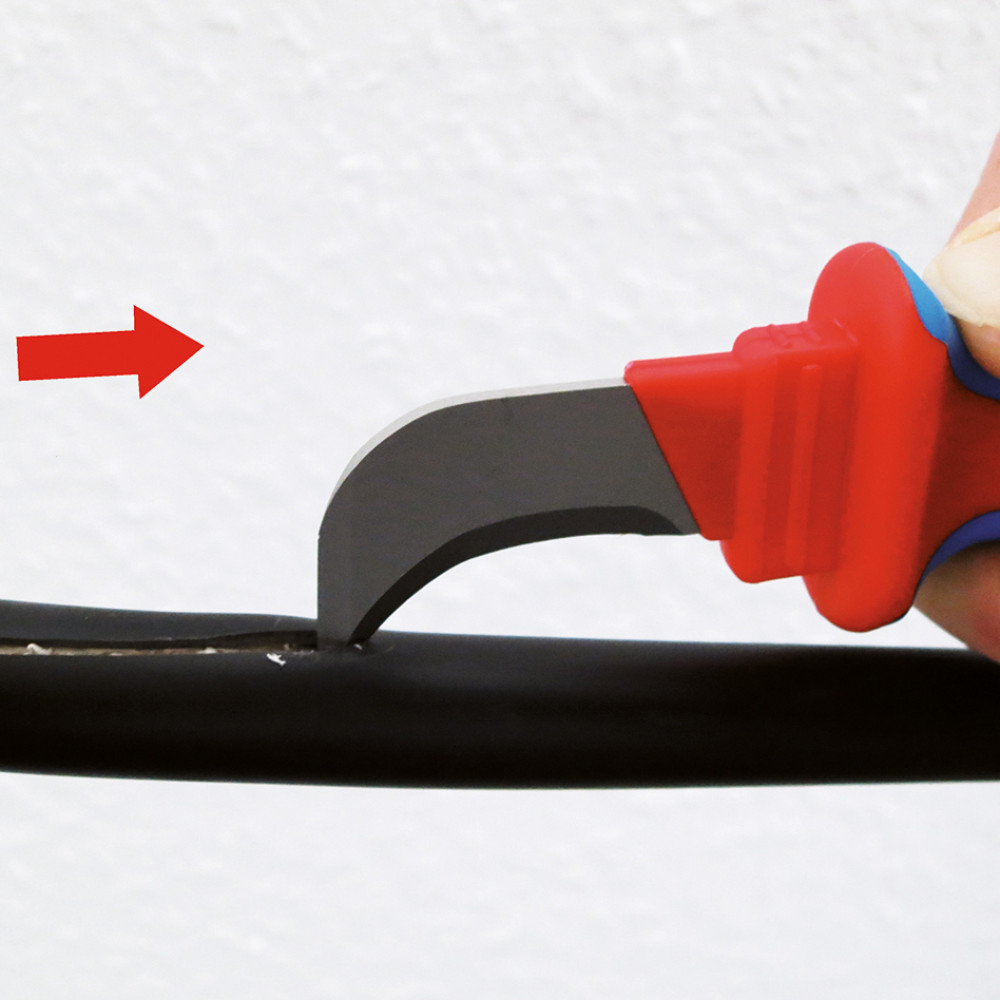 Со специальной плужковой насадкой, ограничивающей глубину реза оболочки, что исключает повреждение внутренних слоев