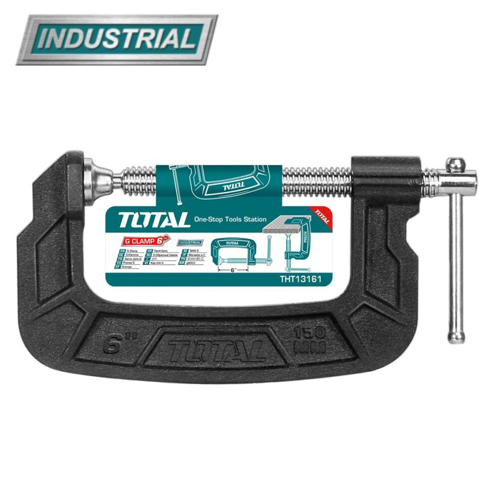 - Профессиональная (industrial) G-образная струбцина из чугуна TOTAL - незаменимый помощник столяра, слесаря домашнего мастера.