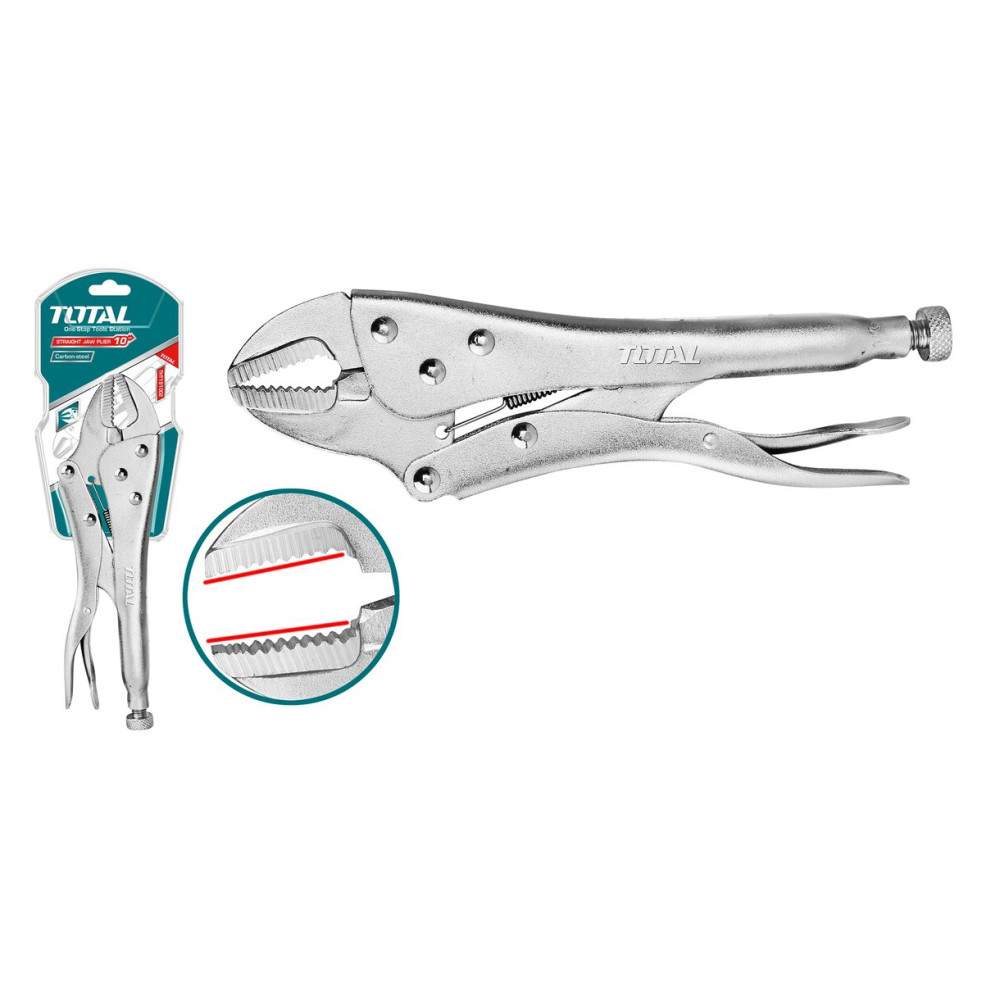 - Индустриальный ручной зажим с фиксатором TOTAL - специализированный высокопрочный зажимной инструмент, рассчитанный на высокие механические нагрузки.