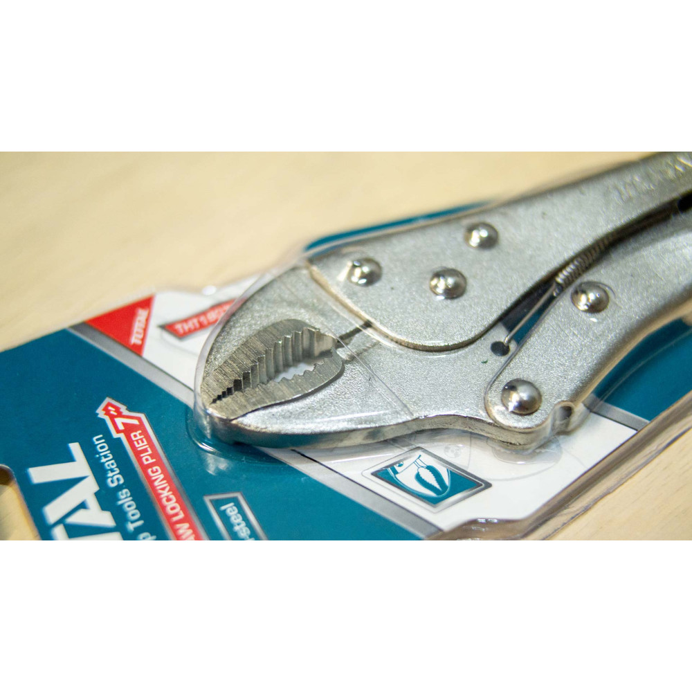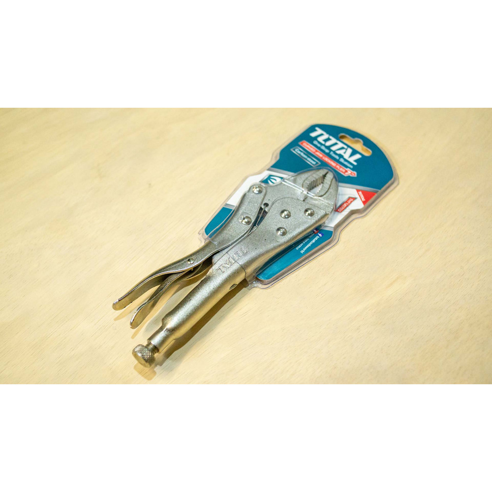 - Индустриальный ручной зажим с фиксатором TOTAL - специализированный высокопрочный зажимной инструмент, рассчитанный на высокие механические нагрузки.