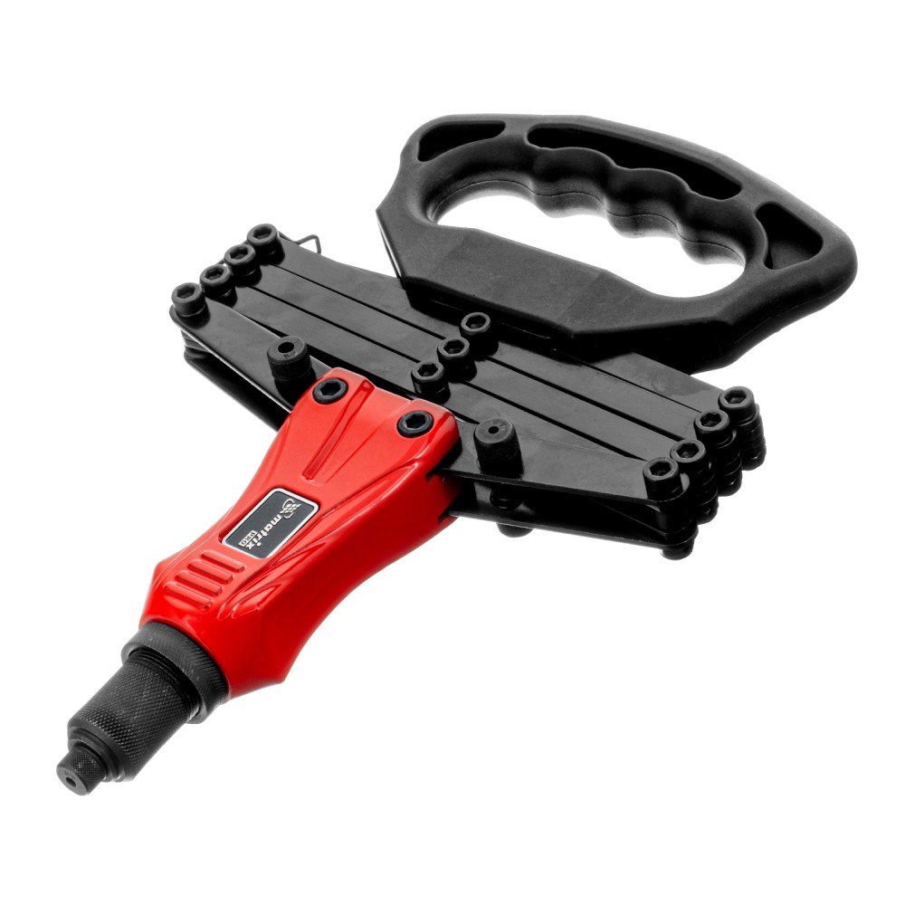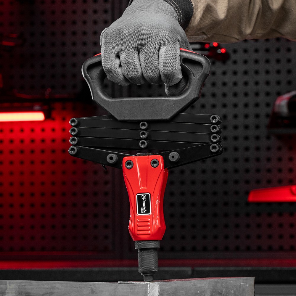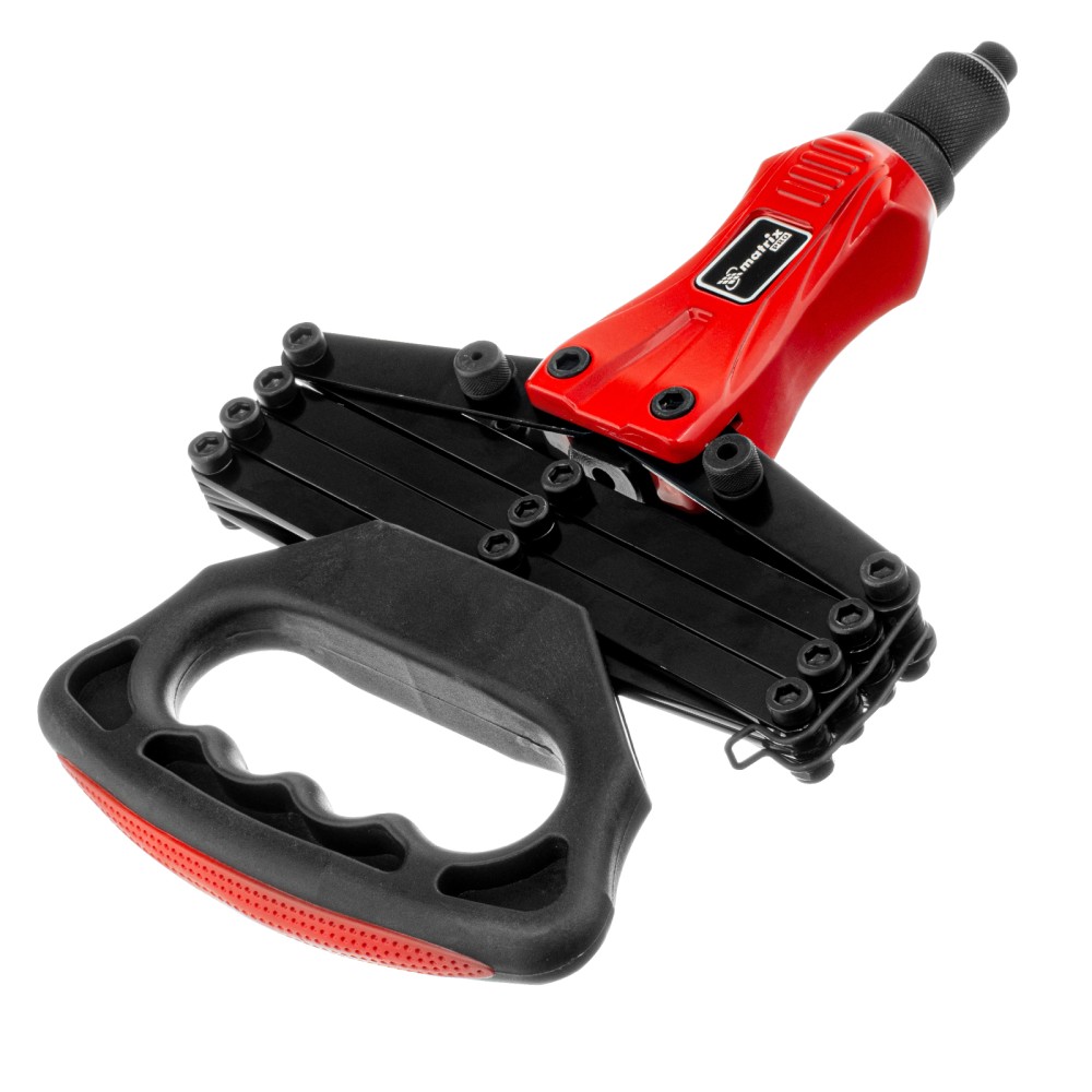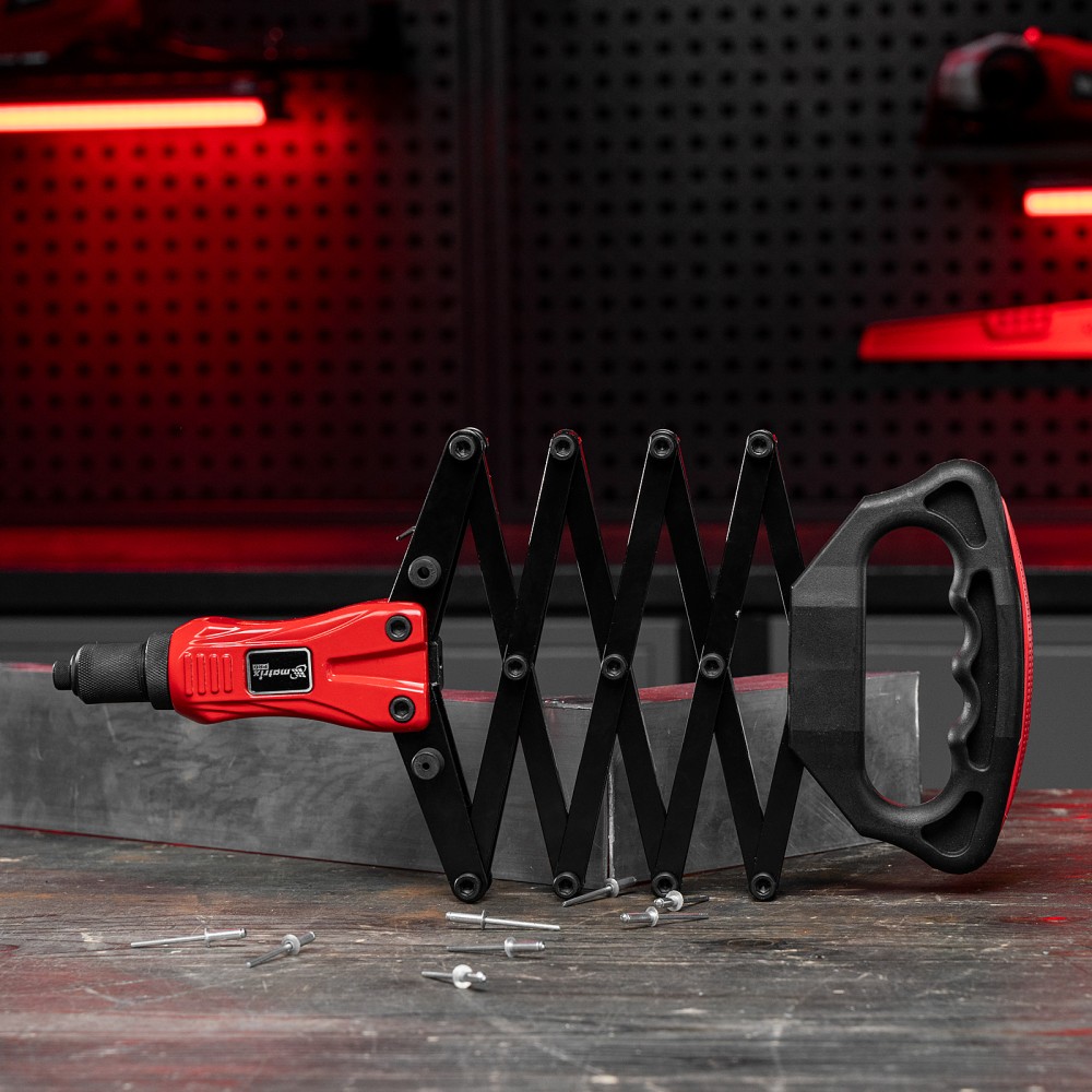 Усиленный ручной заклепочник Matrix PRO «Гармошка» 40548 позволяет соединять металлические листы и профили при помощи вытяжных заклепок диаметром 2,4-3,2-4,0-4,8-6,4 мм. В комплект поставки входят сменные головки соответствующих размеров. Прижимной механизм в виде пантографа экономит усилия, облегчая интенсивную работу. Инструмент используется в строительстве, на производстве и в ремонтных мастерских, а также пригодится в быту.ПреимуществаПрочность и долговечность — литой корпус изготовлен из алюминиевого сплава, а цанговый механизм — из прочной хромомолибденовой стали.Надежная фиксация крепежа — трехлепестковый зажимной механизм крепко удерживает вытяжной стержень заклепкиУдобное хранение и транспортировка — прижимной механизм удерживается в сложенном состоянии при помощи металлической скобы.