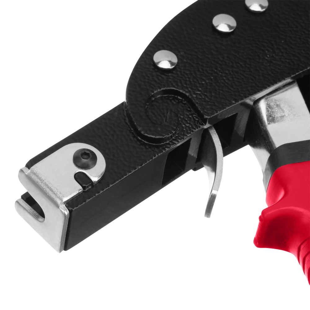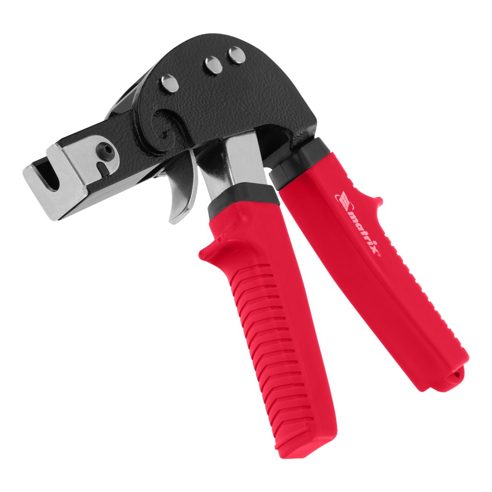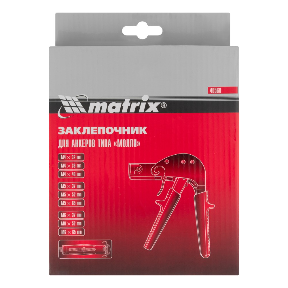Заклепочник Matrix 40560 — крепежный инструмент, предназначенный для установки анкеров типа «Молли» в пустотелые конструкции. Инструмент подходит для профессионального и бытового применения.ПреимуществаРешение широкого спектра задач — с помощью заклепочника можно установить сплит-систему, повесить шкафчики или полки.Универсальность — инструмент совместим с анкерами М4, М5, М6, то есть может использоваться с крепежом самых распространенных размеров.Комфортная работа без ощущения усталости — эргономичные рукоятки снабжены упорами для пальцев.