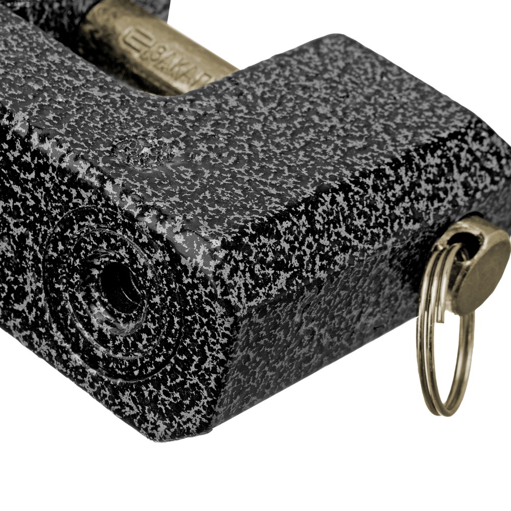 Навесной замок Сибртех ЗН2-3 91609 шириной 90 мм предназначен для защиты помещений от несанкционированного доступа. Запирающий палец толщиной 13 мм наполовину скрыт в корпусе, поэтому замок устойчив к механическому взлому. Он подойдет для установки на калитку, дверь гаража, сарая, склада или жилого помещения.ПреимуществаВысокий показатель прочности — корпус изготовлен из чугуна, а дужка — из стали.Надежная защита — запорный механизм финского типа устойчив к вскрытию отмычкой.Удобная комплектация — замок поставляется с 3 ключами, поэтому доступ в помещение будет сразу у нескольких людей.