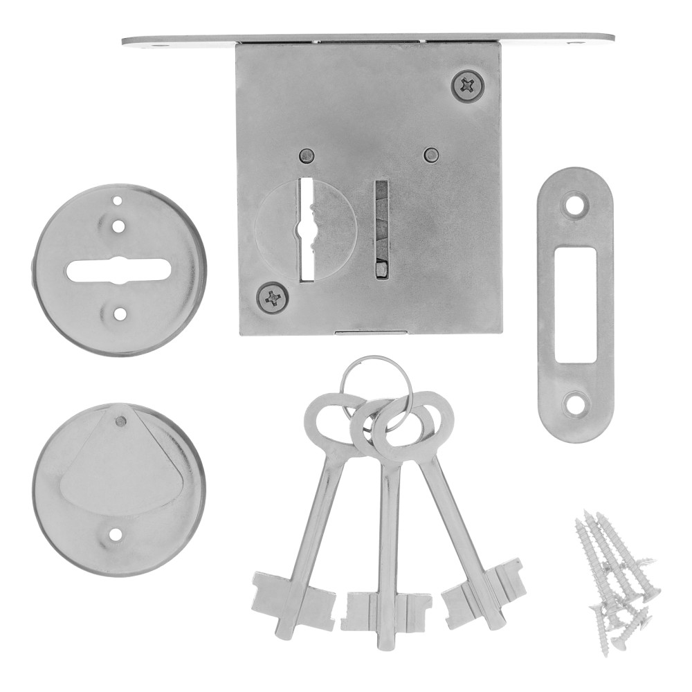 Врезной замок Сибртех ЗВ8-4 91663 сувальдного типа используется для запирания внутренних дверей жилых и хозяйственных помещений. Замок имеет 1 класс секретности — его невозможно вскрыть методом подбора ключей.ПреимуществаДолговечность — замок оцинкован для защиты от коррозии.Защита от случайного запирания — открыть или закрыть замок изнутри можно только ключом.3 ключа в комплекте — изготавливать дубликаты не требуется.