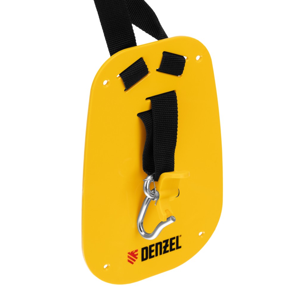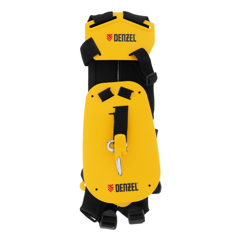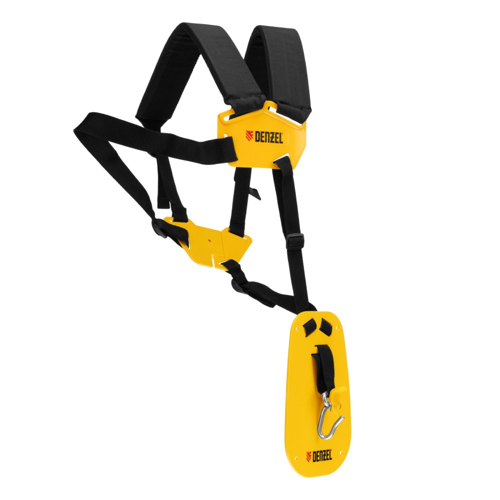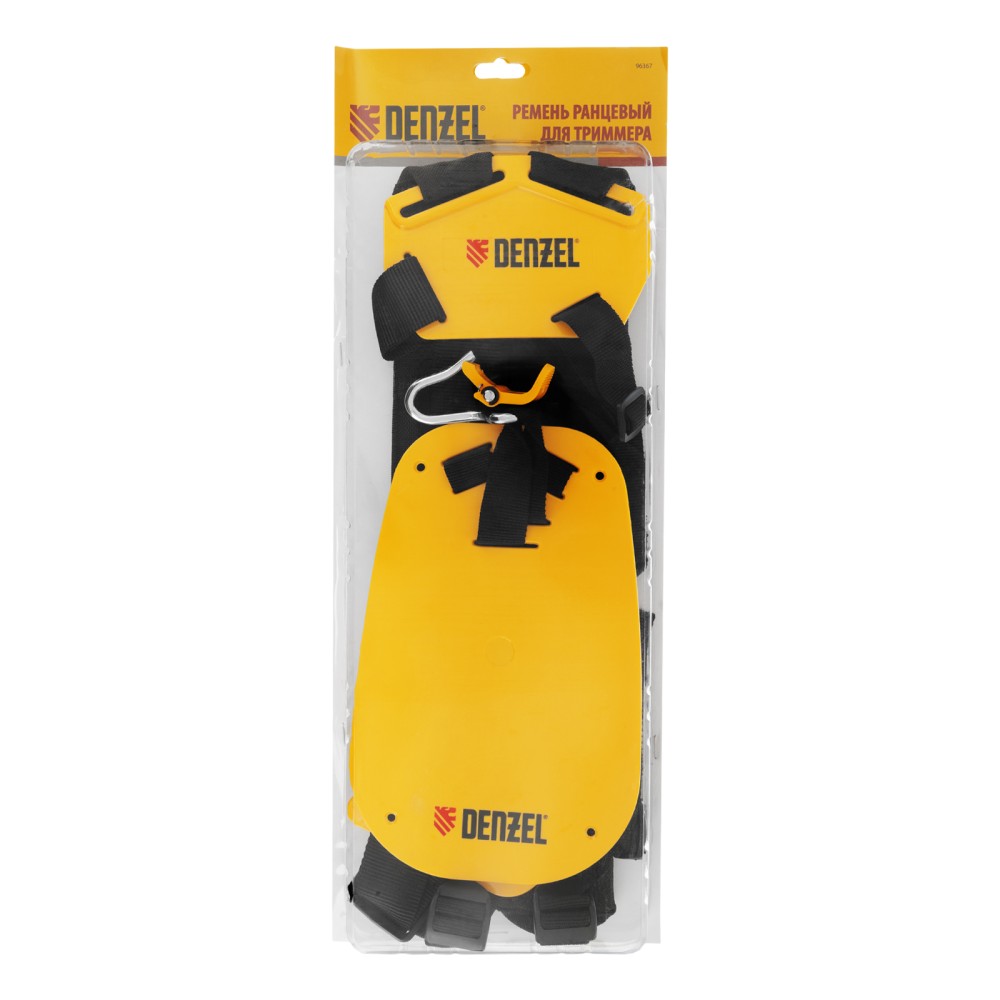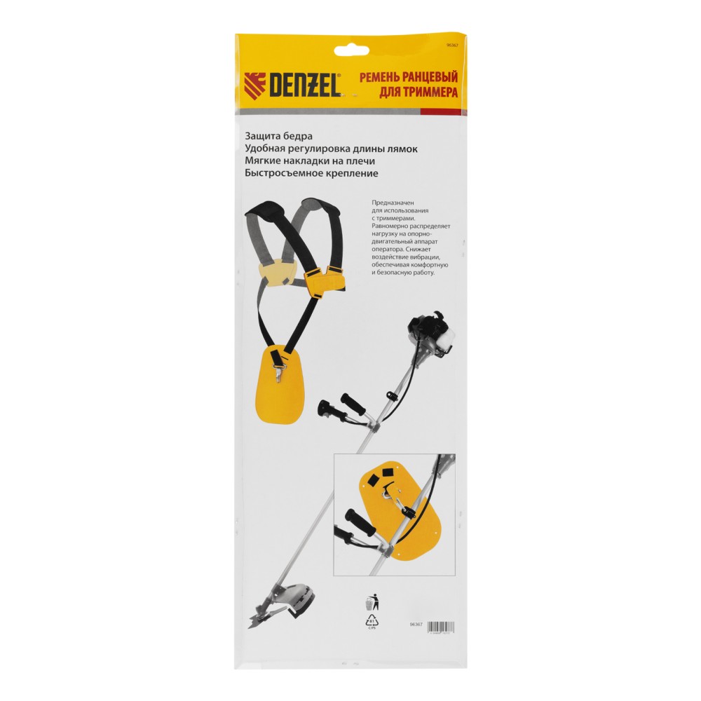 Ранцевый ремень Denzel 96367 с защитой бедра используется с бензиновыми триммерами Denzel. Двухплечевая подвесная система равномерно распределяет вес инструмента, снижая нагрузку на спину, поэтому она подходит для профессиональных работ на участках большой площади.ПреимуществаНадежная защита бедра — жесткая накладка предотвращает удары штанги триммера о ногу.Прочность и долговечность — ремень из износостойкого материала устойчив к истиранию и разрыву.Быстросъемный карабин — подвесная система крепится к триммеру одним движением.Комфортное использование — длину лямок можно отрегулировать под рост пользователя.