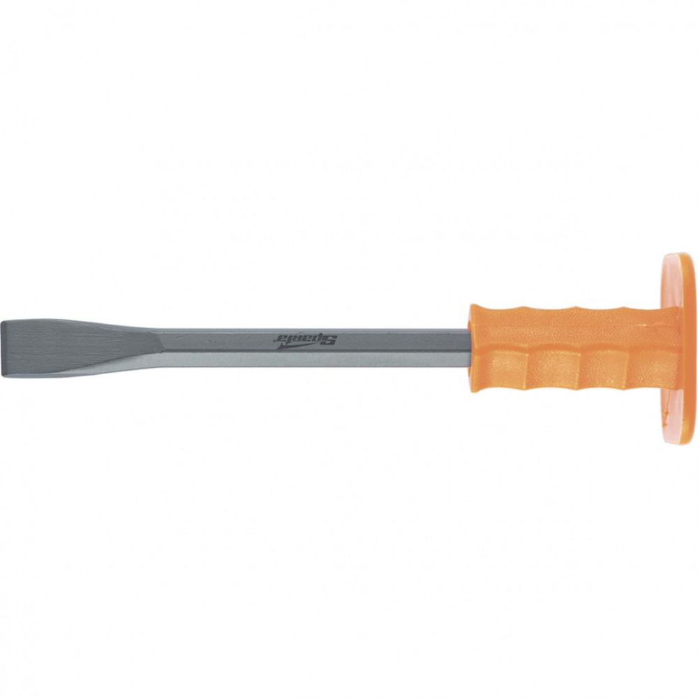 Зубило с протектором Sparta Master 187605, 300 х 24 мм, имеет классическую плоскую форму и позволяет проводить широкий спектр работ - от демонтажных до скульптурных. Оно пригодится для обработки таких материалов, как кирпич, бетон, камень. Защитный резиновый протектор обеспечивает безопасность при использовании инструмента.